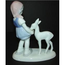 West German figurine of girl and fawn. Marked on bottom Bavaria, Made in Western Germany. 6" H.