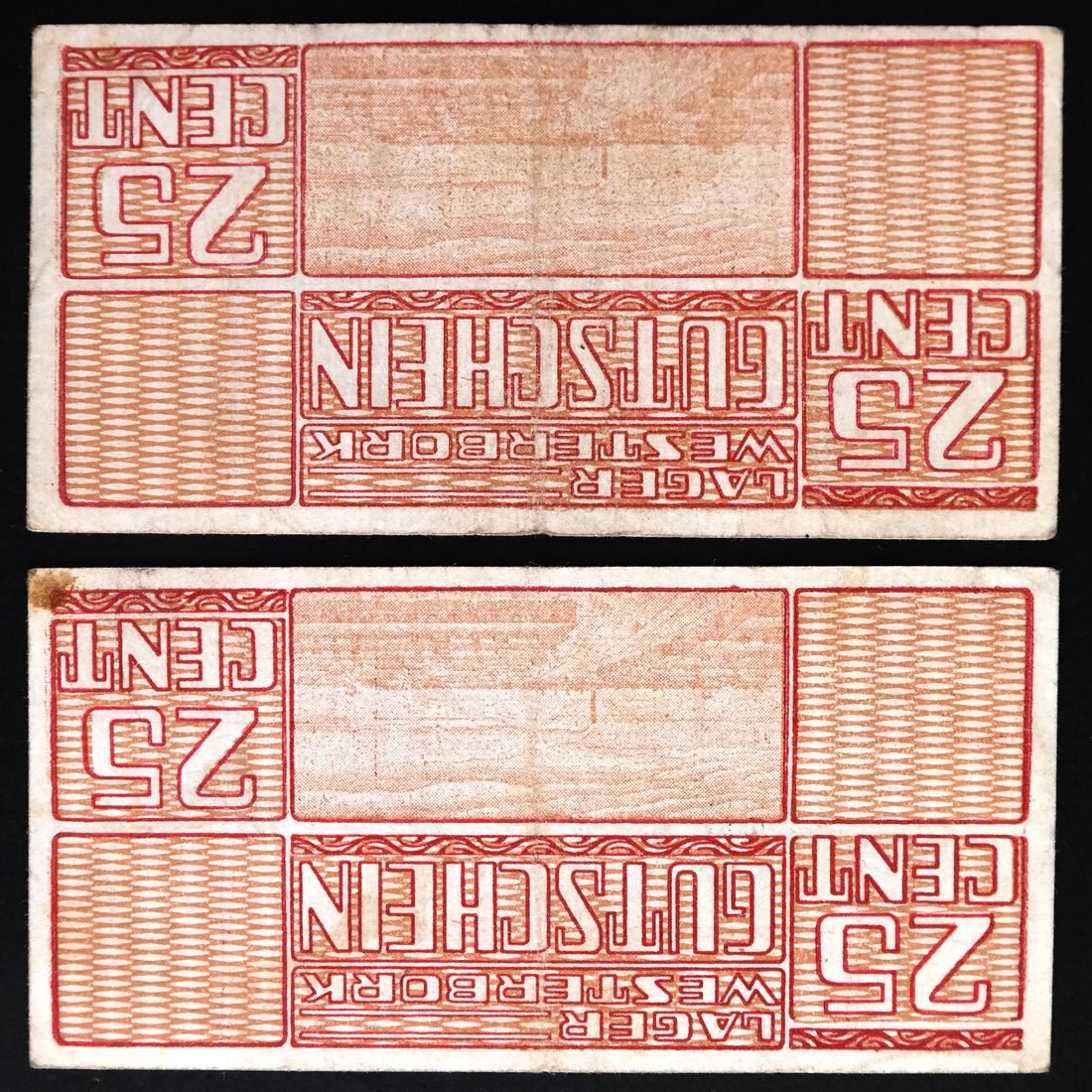 Accumulation of thirty-four (34) unwatermarked 25c series AA notes, some very low serial numbers starting at 0286, mixed condition from Good to Extremely Fine+.