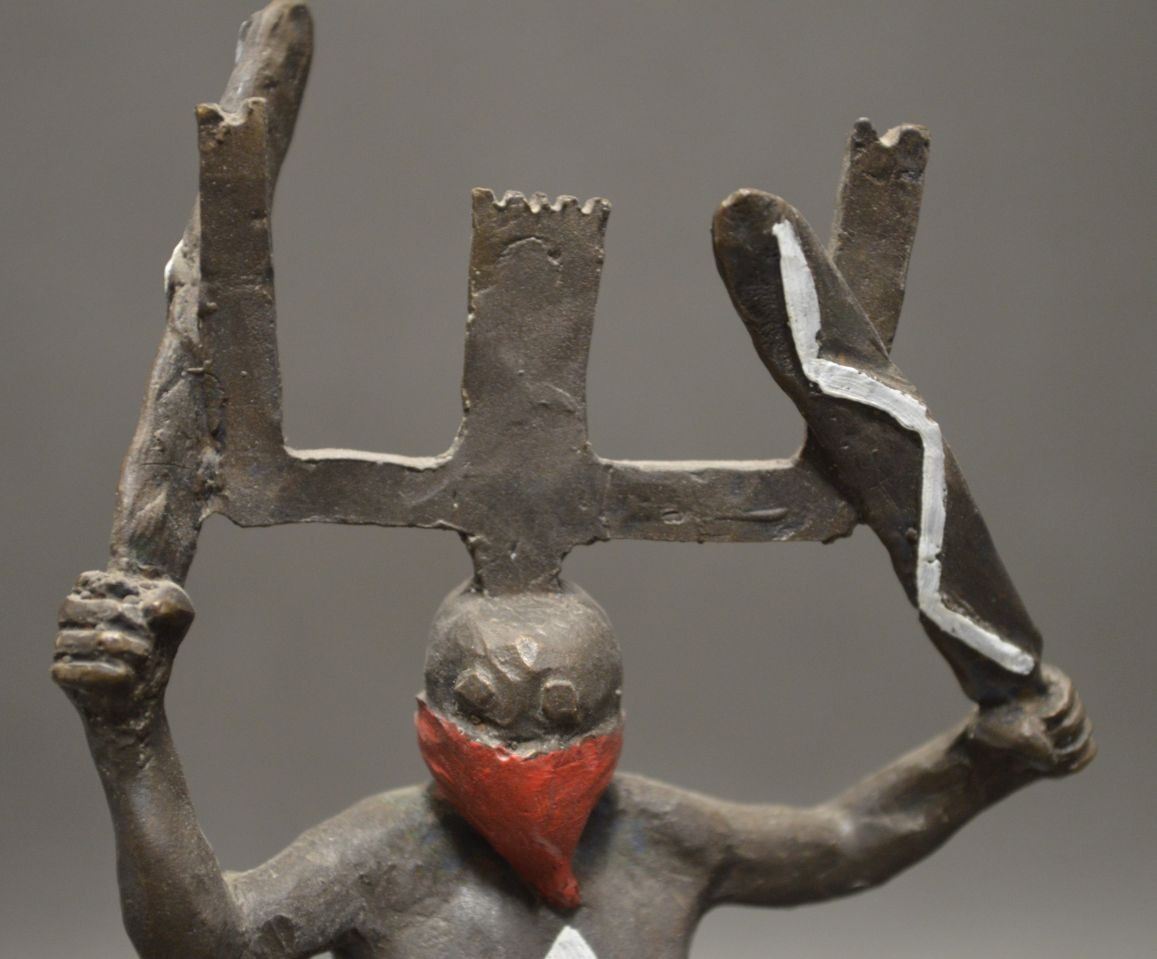 1983 original western bronze depicting Apache Spirt dancer signed By Tom Knapp. 7'' tall