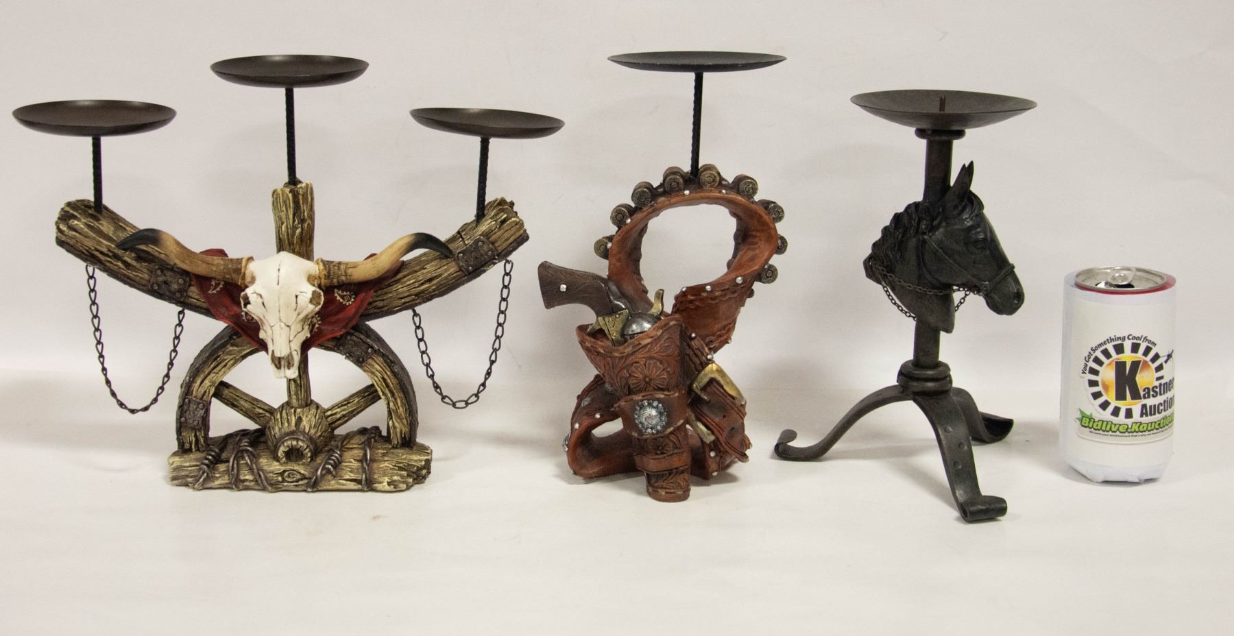 WESTERN CANDLE HOLDERS HORSE & PISTOL DECOR