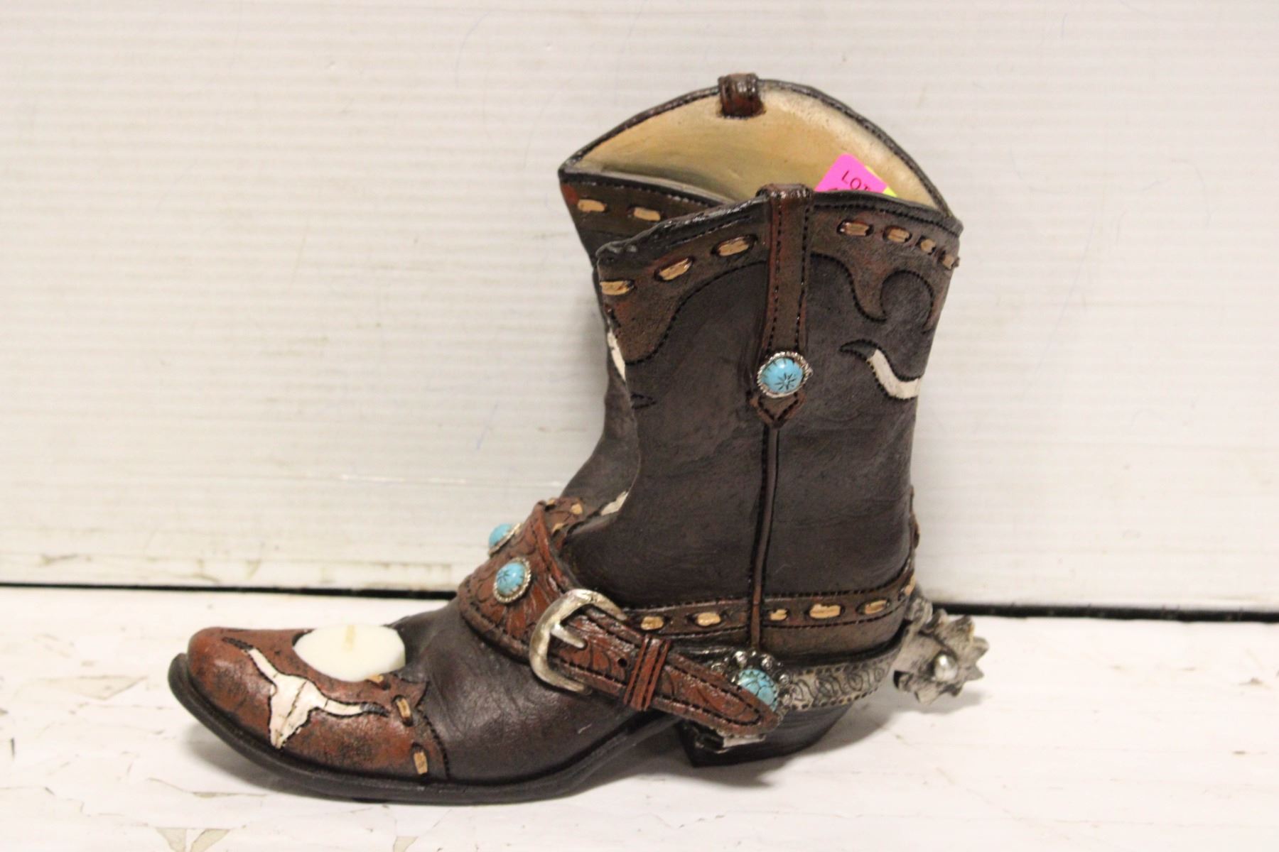 WESTERN COWBOY BOOT CANDLE HOLDER 8"H X 10"