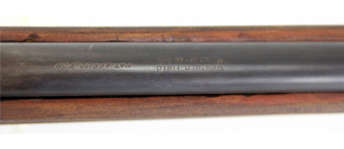 WESTERN FIELD MODEL 31 .22 LR RIFLE Western Field Model 31 bolt action rifle in .22LR, with tube feed magazine, and take down knob. Type: Rifle-Bolt Manufacturer: Western Field Model: 31 Caliber / Gauge: .22 LR Barrel Length: 23 inches Serial Number: None Condition: Bore is bright, bluing about 65%, with thinning and patina. Stock is good and free of cracks.