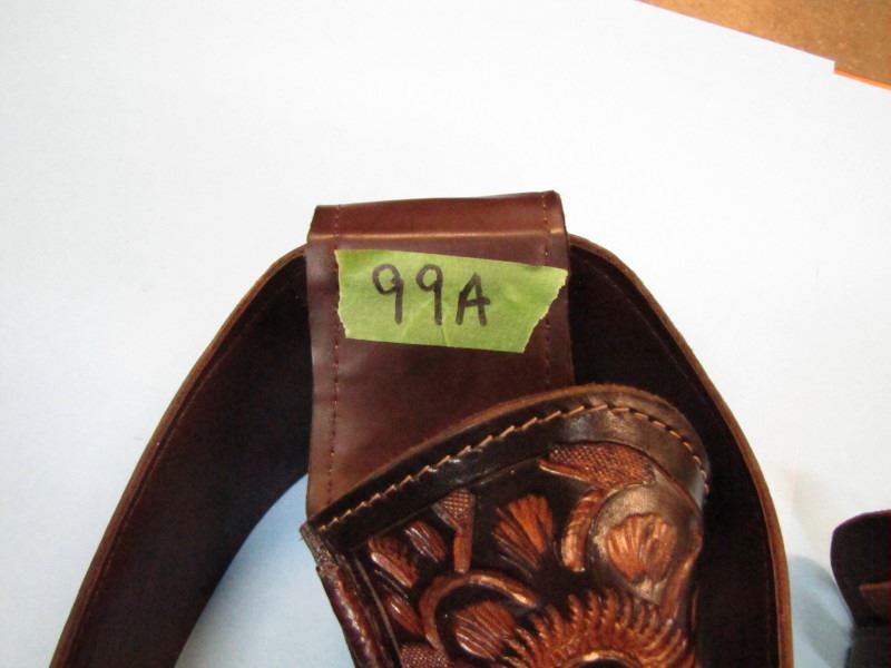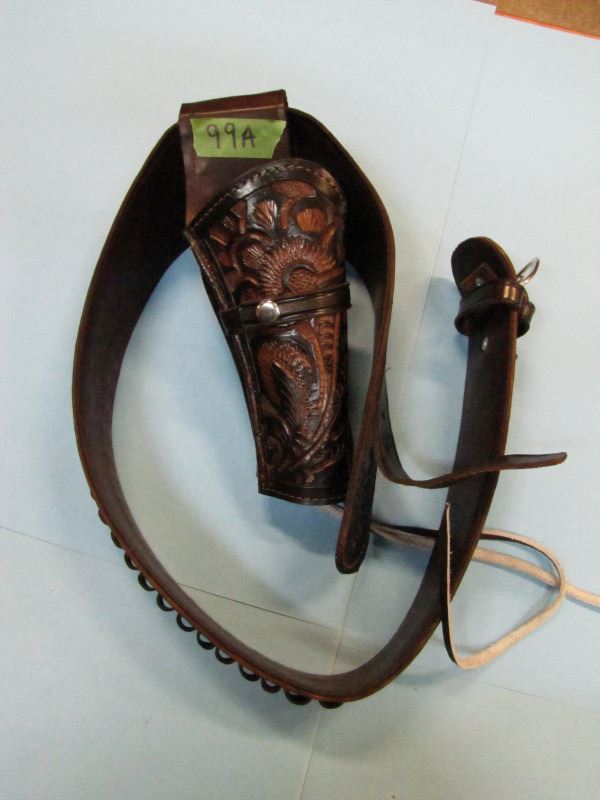 WESTERN STYLE TOOLED LEATHER GUN HOLSTER & BELT