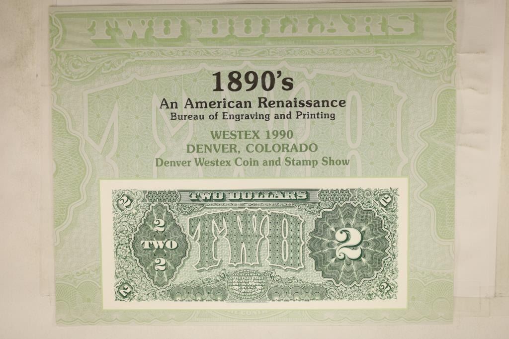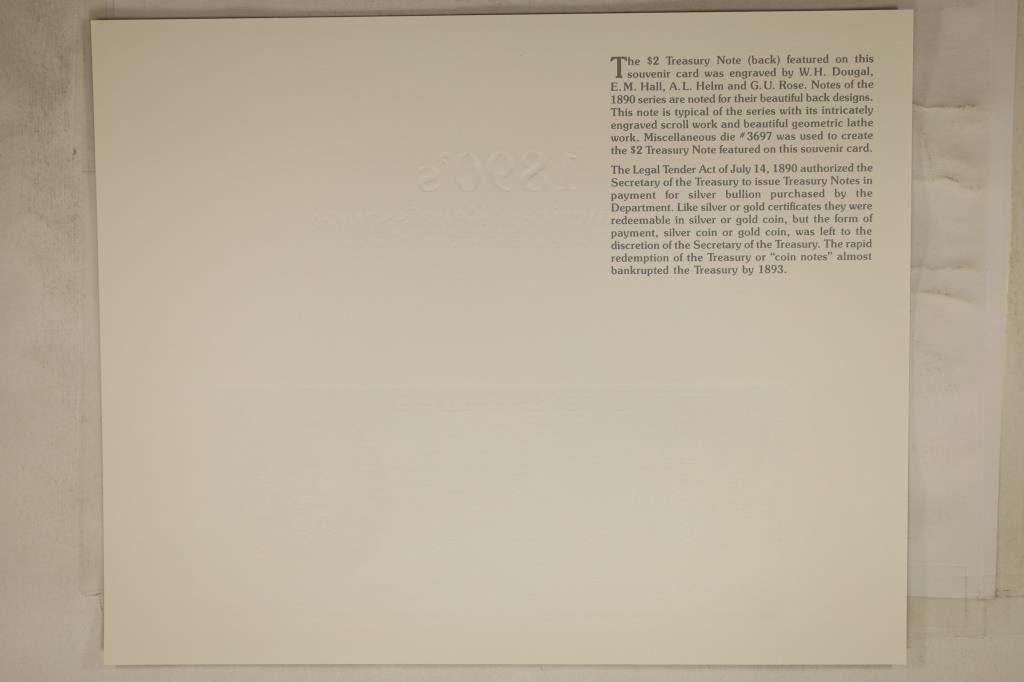 BACK OF 1890 $2 TREASURY NOTE PRINTED BY THE BUREAU OF ENGRAVING AND PRINTING