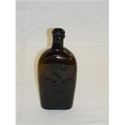 WESTFORD OLIVE AMBER LIBERTY EAGLE 1/2 PINT FLASK, GII-65, SMOOTH BASE W/ DOUBLE COLLAR, MINOR HIGH POINT WEAR