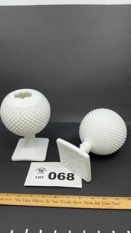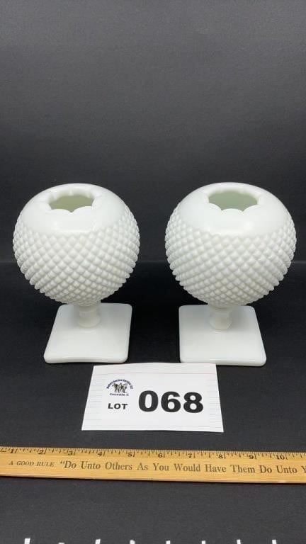 WESTMORELAND HOBNAIL IVORY ROSE BOWLS 7 in