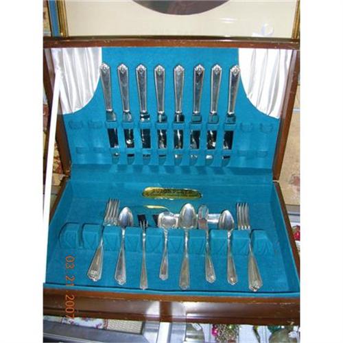 Westmoreland Sterling "Lady Hilton" pattern. Absolutely beautiful! Eight place settings of 3 pieces plus a pie server, pickle fork, sugar spoon, butter knife, and serving spoon. The original black and white brochure is included. (Comes with silverware case which is Oneida).