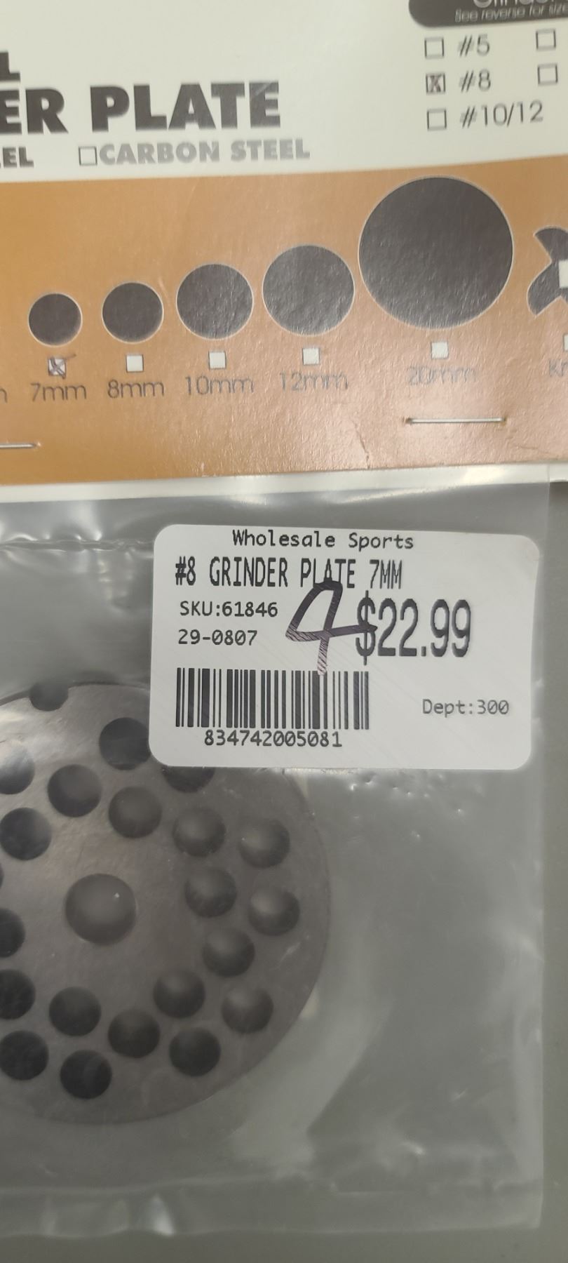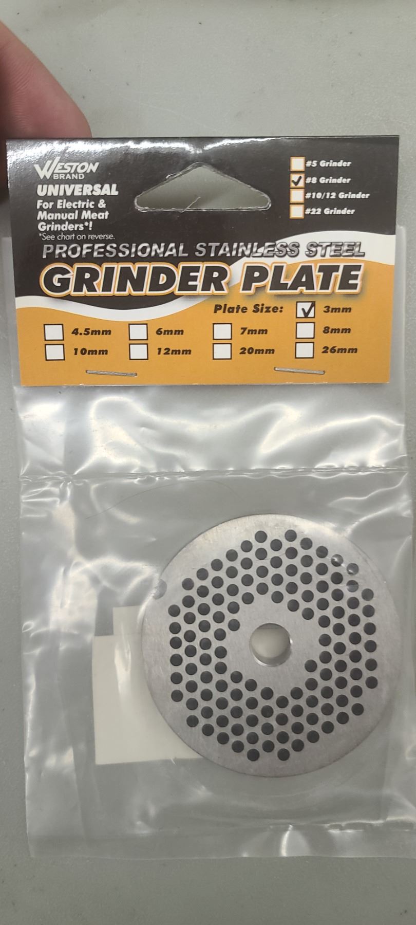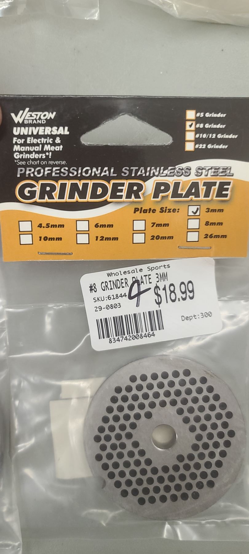 WESTON GRINDER PLATES: 3MM QTY X 2, 7MM QTY X 2 PLUS PVC BAG NECK SEALING TAPE. RETAIL VALUE $146