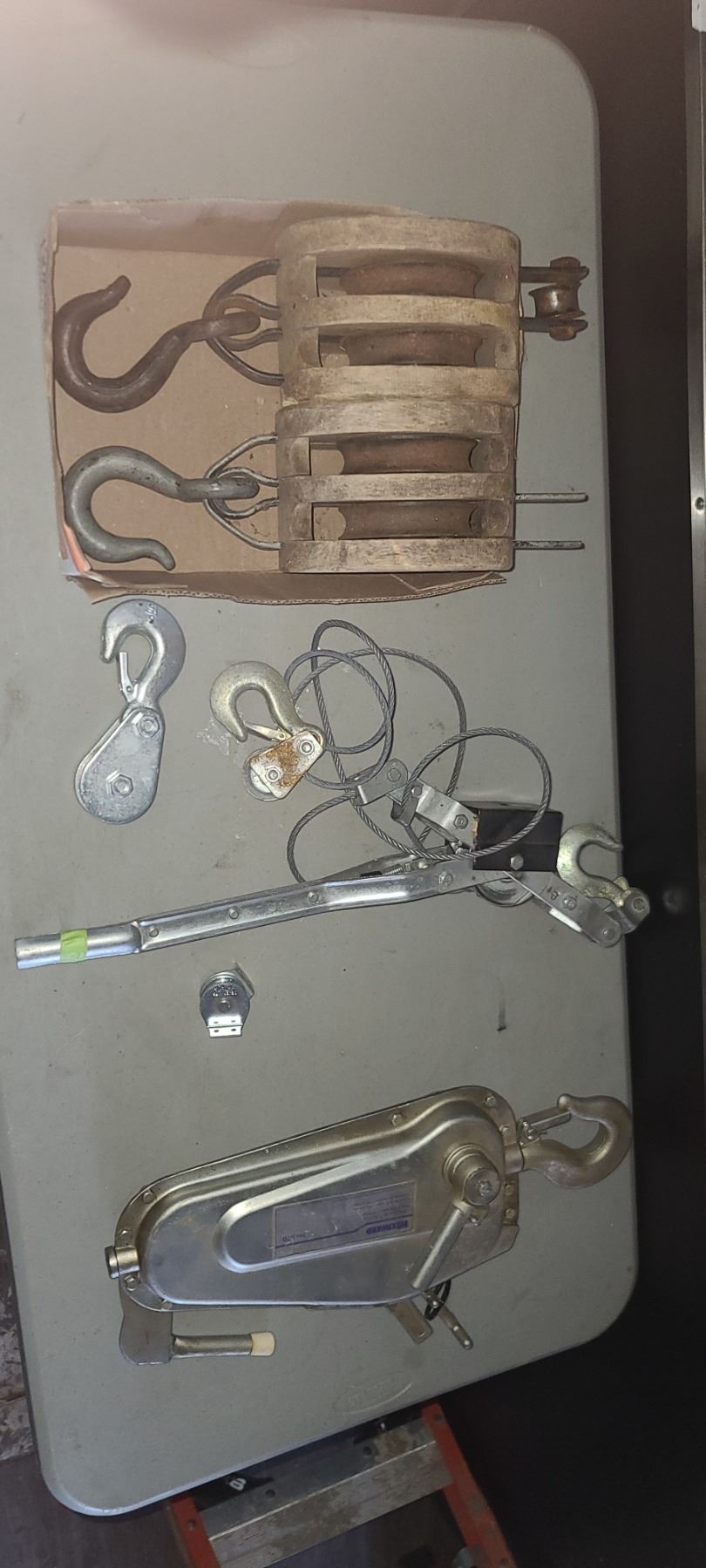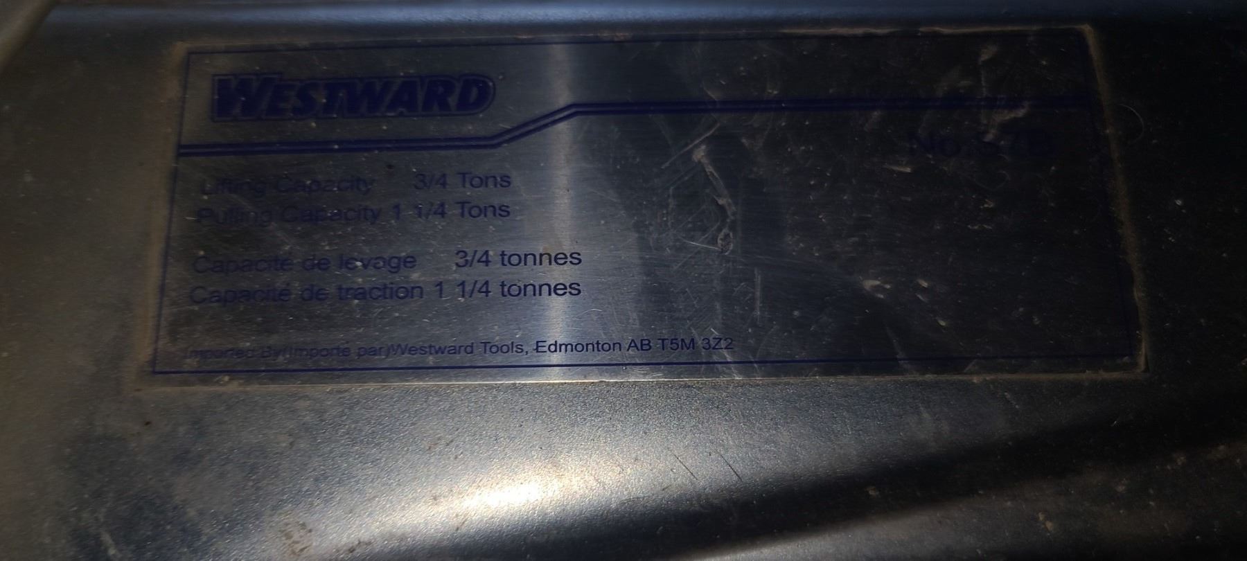 WESTWARD 3/4TON COME A LONG, PULLEYS, HOOKS, RATCHETING COME-A-LONG
