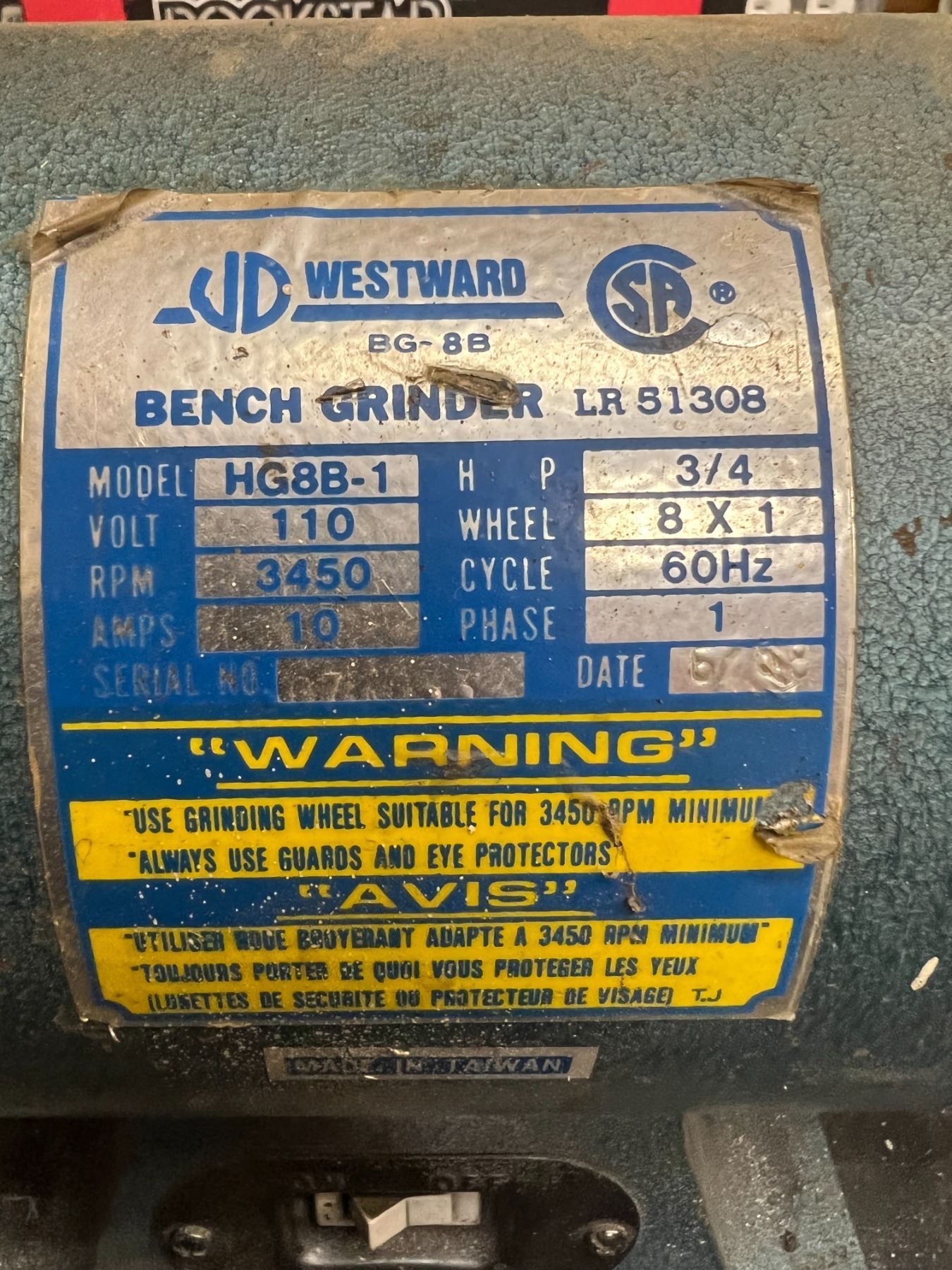 WESTWARD 8" BENCH GRINDER MODEL HG8B-1 AND FACE SHEILD