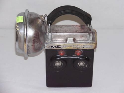 WHEAT PRESENTATION LAMP - ENGINE 83 and H and L CO. 20 NYC FIRE DEPT. JAN. 1ST 1938 MADE BY KOEHLER - NORMAL WEAR and DENTS;