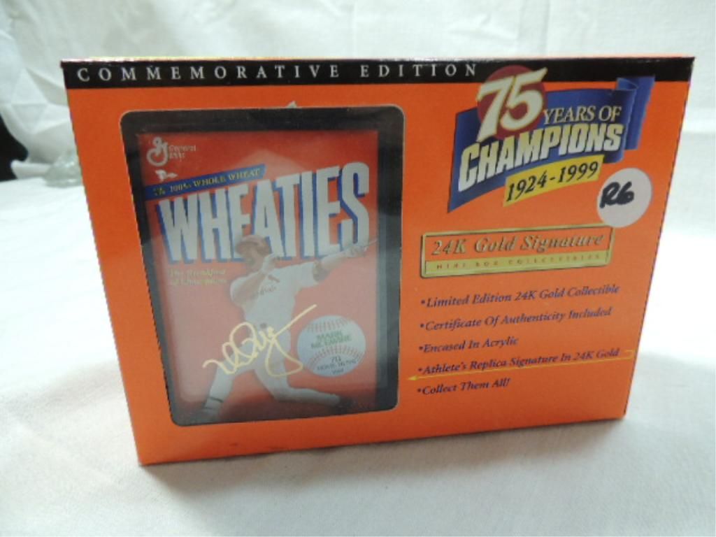 1999 75 YEARS OF CHAMPIONS BY WHEATIES. MARK MCGWIRE SIGNATURE IN 24K GOLD. SEE PHOTOS FOR DETAILS.