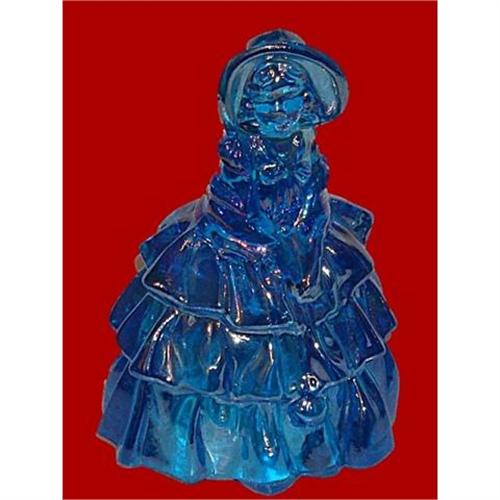 AQUA BLUE CARNIVAL GLASS FIGURINE OF A SOUTHERN LADY IT IS MADE BY WHEATON THE FIGURINE IS ABOUT 5 1/4 HIGH AND 4 INCHES WIDE AT THE BASE IT IS IN EXCELLENT CONDITION WITH NO CHIPS OR CRACKS