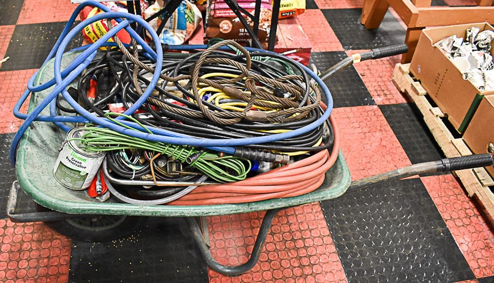 WHEEL BARROW WITH WIDE VARIETY OF CONTENTS