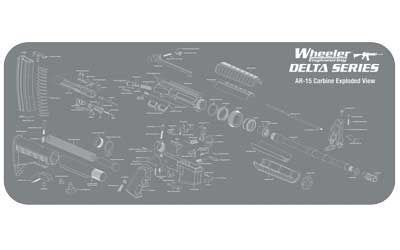 The Wheeler Delta Series AR-15 Maintenance Mat is perfect for any AR-15 owner. It features a screen printed expanded view of an AR-15 Carbine to easily identify the parts of your rifle. The Mat is made of a dark gray non-marring padded neoprene material with a durable non-skid rubber backing to protect firearm finishes while helping to keep track of small parts. Excess oils and solvents are absorbed into the mat, keeping the surface clean and dry. Each mat is machine or hand washable with mild detergent and water, and can be rolled up to easily fit in your range bag.