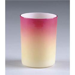Lot 13 WHEELING PEACH BLOW TUMBLER Shiny Wheeling peach blow tumbler cranberry to cream in color. SIZE: 3-3/4” t. CONDITION: Very good to excellent. 5-70401