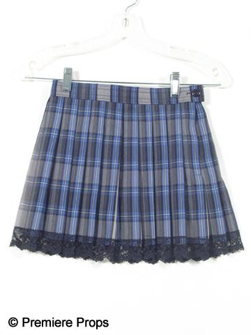 Whip It (2009). This is Iron Maven's (Juliette Lewis) hero roller derby uniform. It includes a sleeveless 'BF' with collar, her name and number ironed on the back of the 'INC' shirt, a blue plaid school girl skirt, a red and navy striped 'Academy' tie, and shiny red leggings. A costume department wardrobe tag completes this costume.