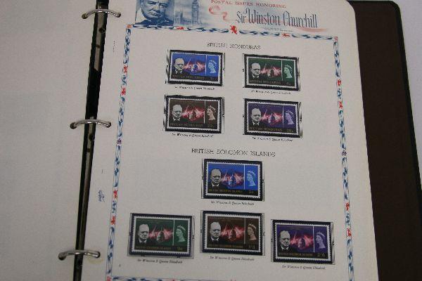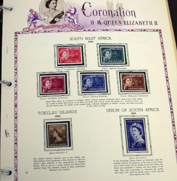 All stamps British Commonwealth unused and unhinged postal issue stamps. Lot includes three Historical Albums. One for the Coronation of H.M. Queen Elizabeth II, one Silver Wedding Commemorative and one Sir Winston Spencer Churchill. Coronation Stamp cata