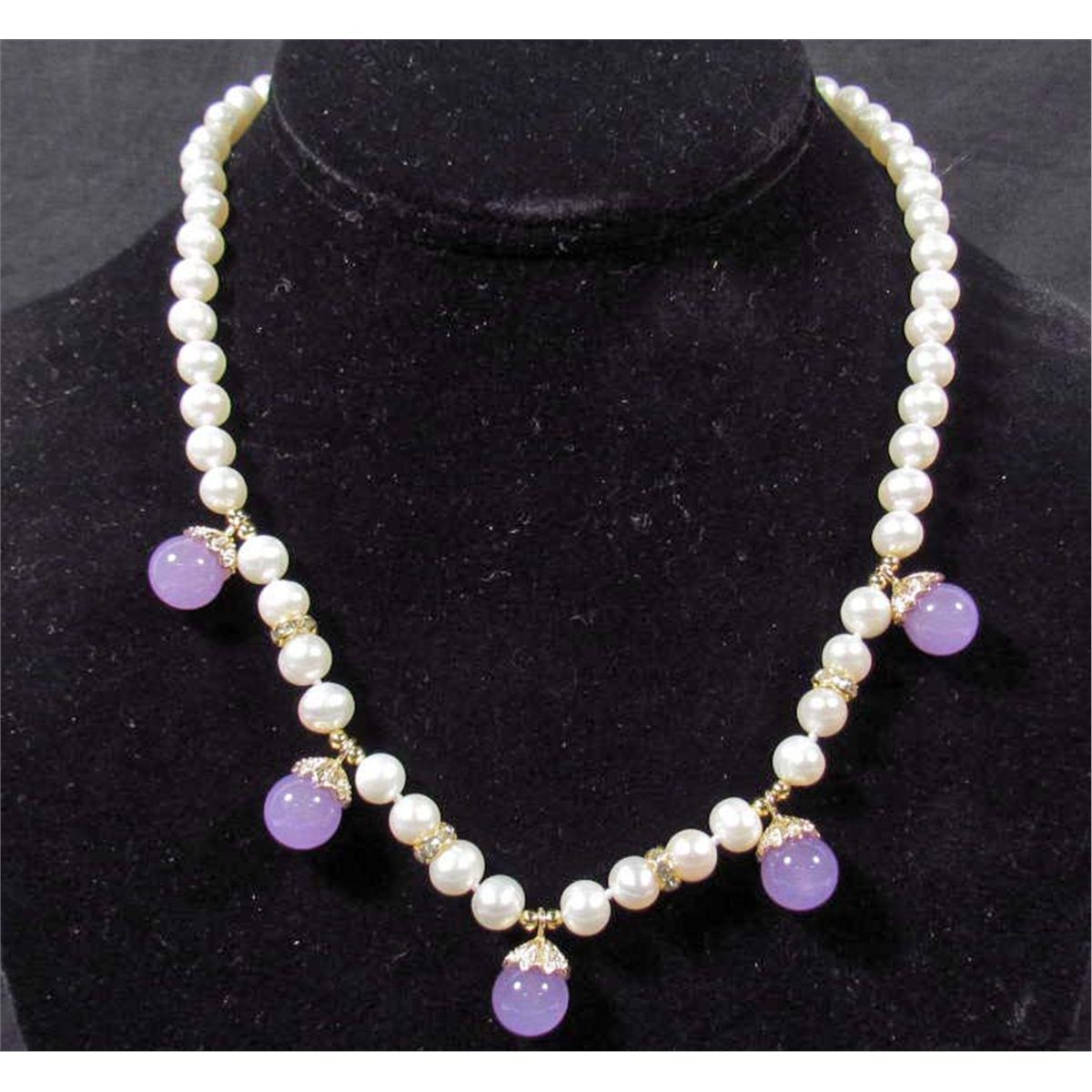 Approx. 18" long w/ 7-8 mm size pearls.  Alexandrite is 9mm.  Gold plated clasp