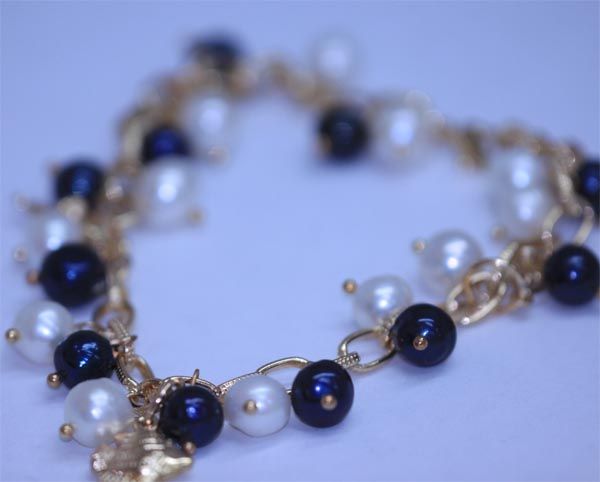 WHITE AND BLACK PEARL BRASS BRACELET **|**|** WHITE AND BLACK PEARL BRASS BRACELET ; MSRP: $100
