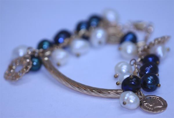 WHITE AND BLACK PEARL BRASS BRACELET **|**|** WHITE AND BLACK PEARL BRASS BRACELET ; MSRP: $100