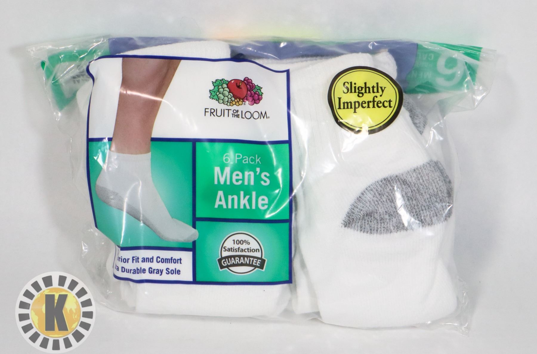WHITE ANKLE SOCKS,12-16,PACK OF 6,FRUIT OF THE