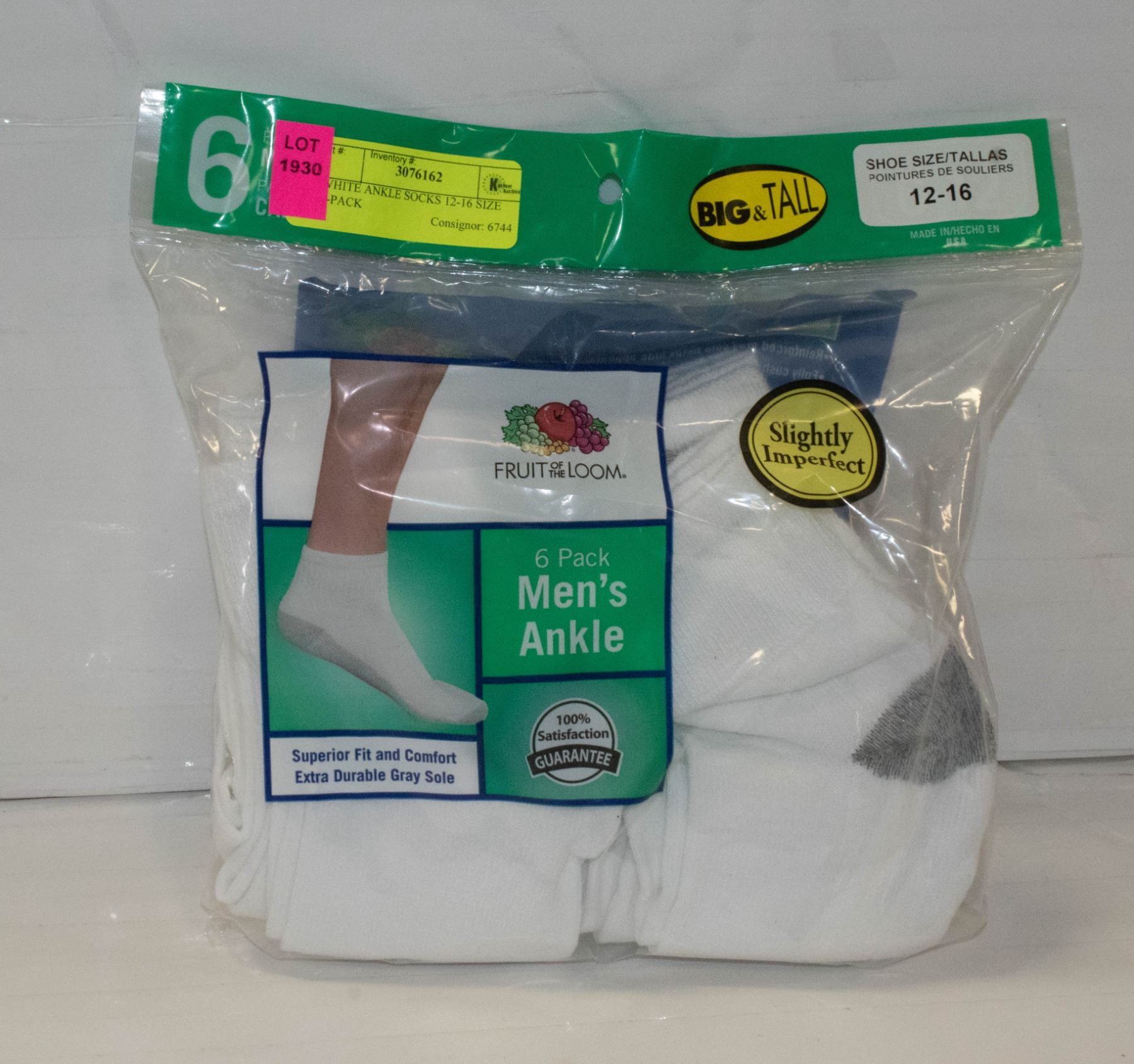 WHITE ANKLE SOCKS 12-16 SIZE 6-PACK
