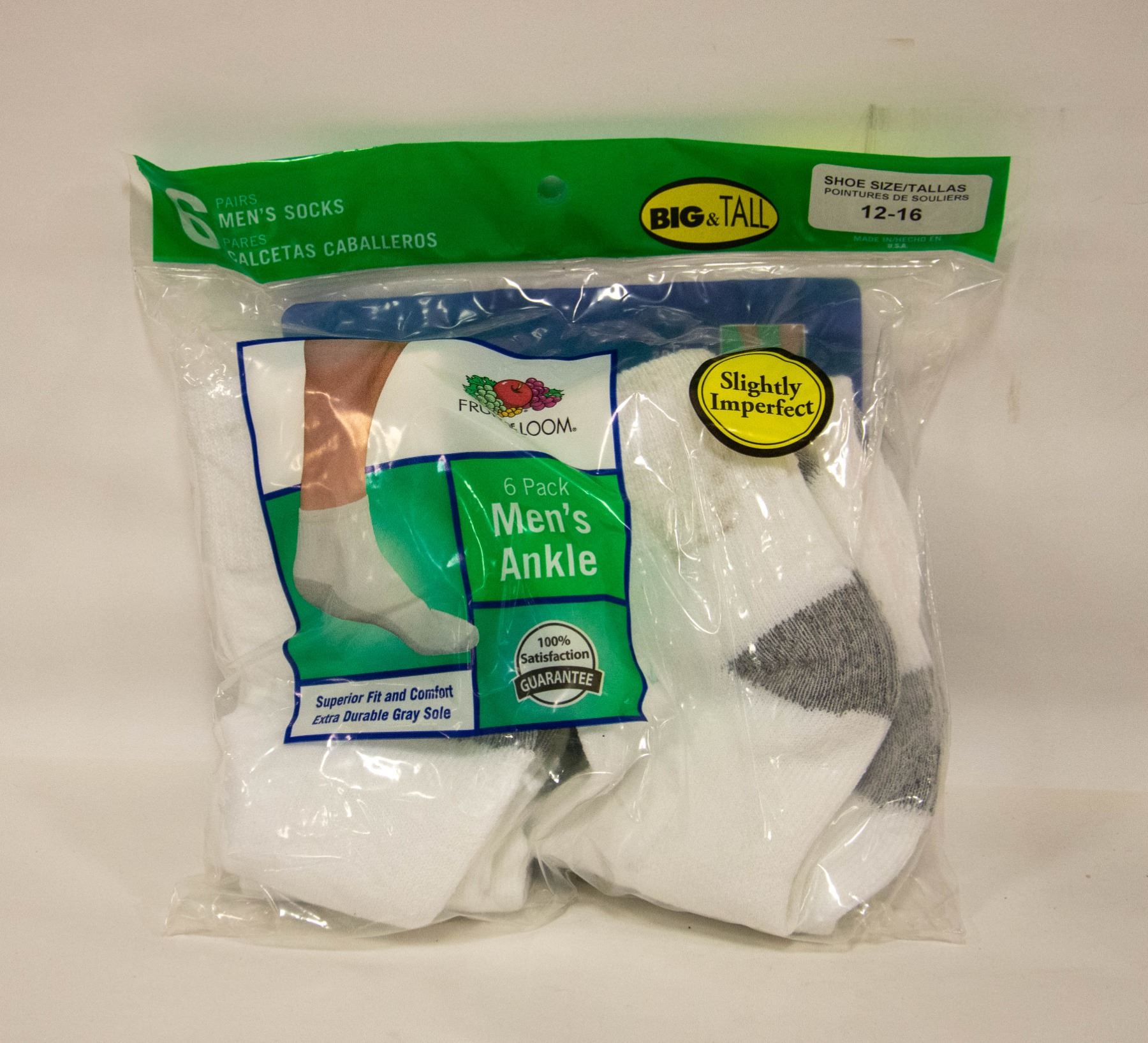 WHITE ANKLE SOCKS 12-16 SIZES 6-PACK