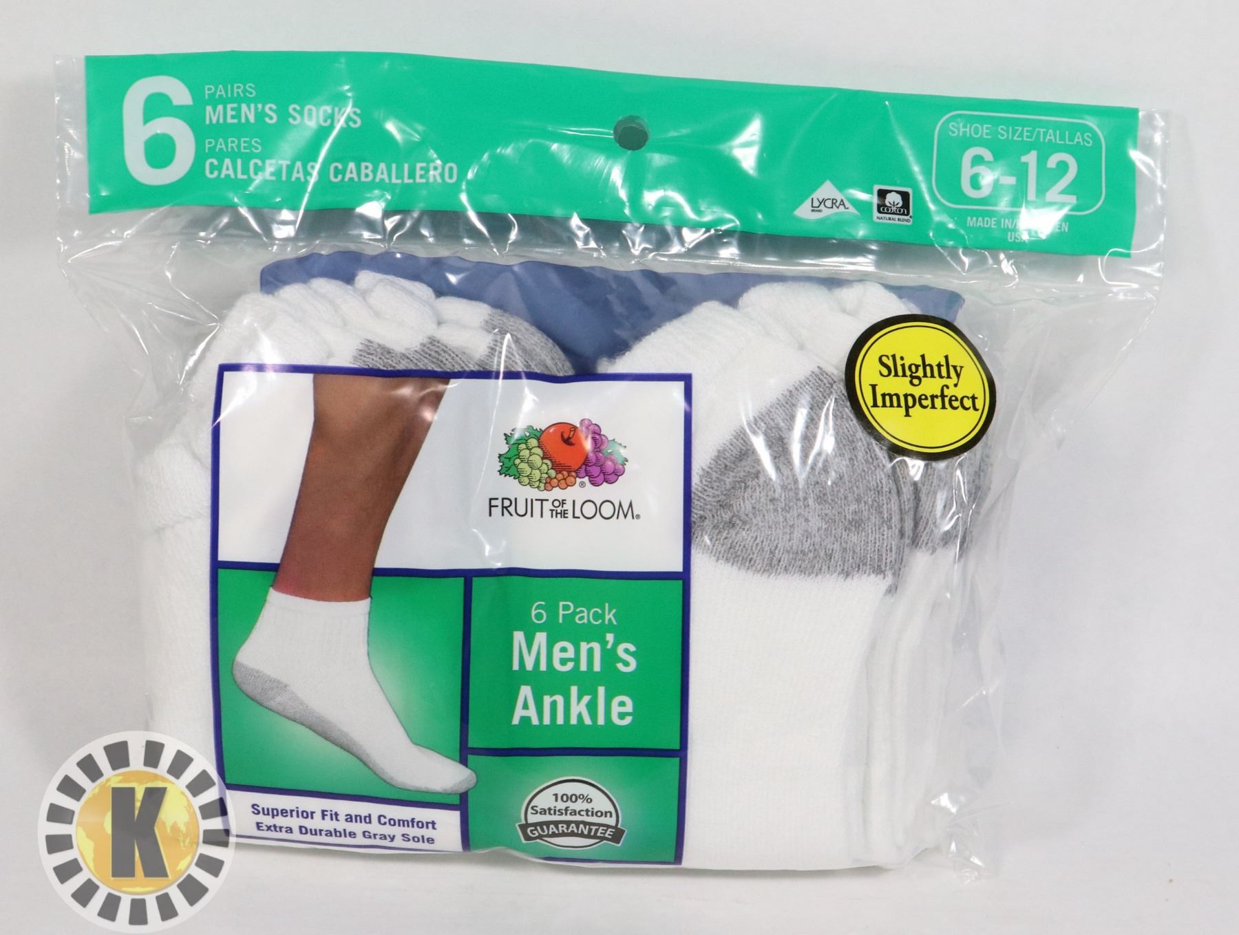 WHITE ANKLE SOCKS,6-12,PACK OF 6,FRUIT OF THE