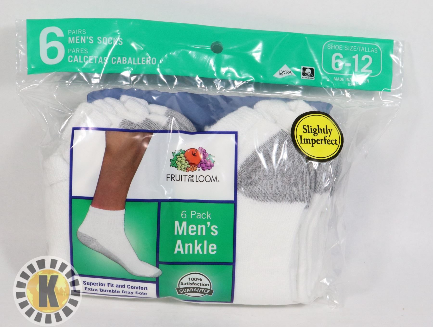WHITE ANKLE SOCKS,6-12,PACK OF 6,FRUIT OF THE