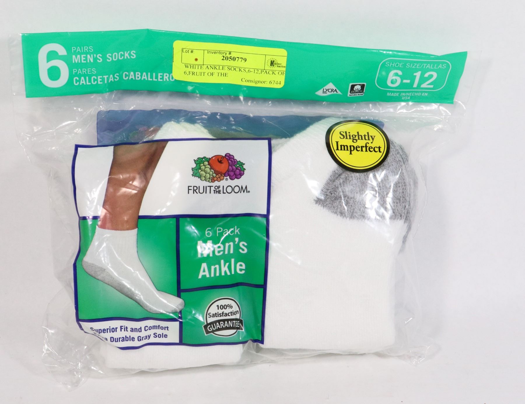 WHITE ANKLE SOCKS,6-12,PACK OF 6,FRUIT OF THE