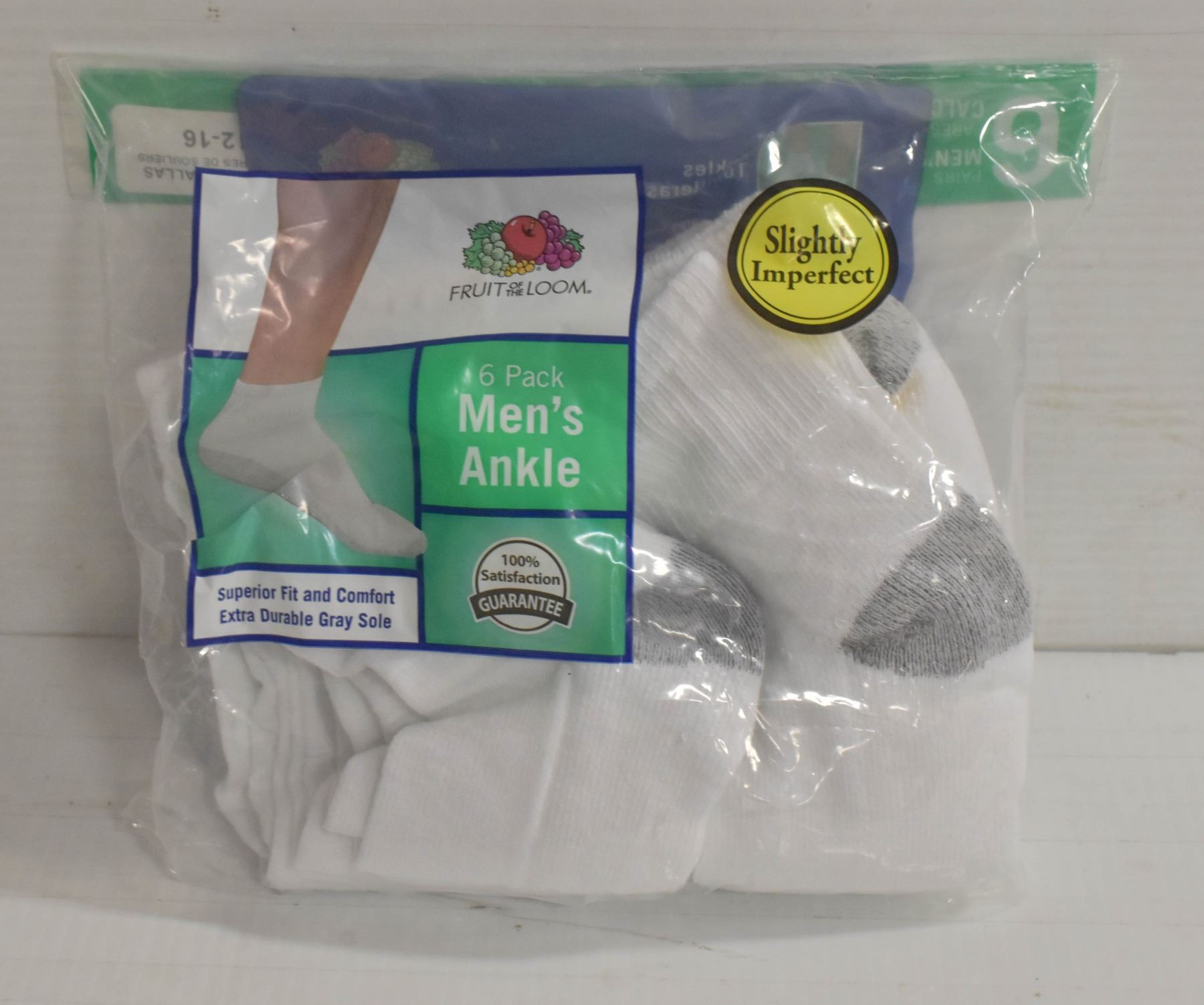 WHITE ANKLE SOCKS,SIZE 12-16,6-PACK,FRUIT OF THE