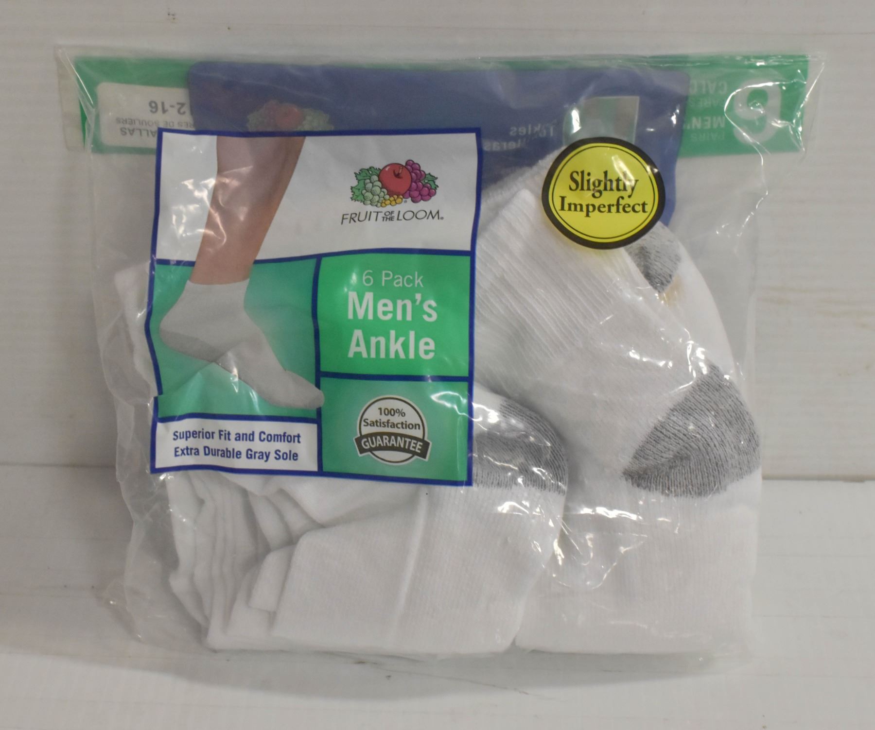 WHITE ANKLE SOCKS,SIZE 12-16,6-PACK,FRUIT OF THE