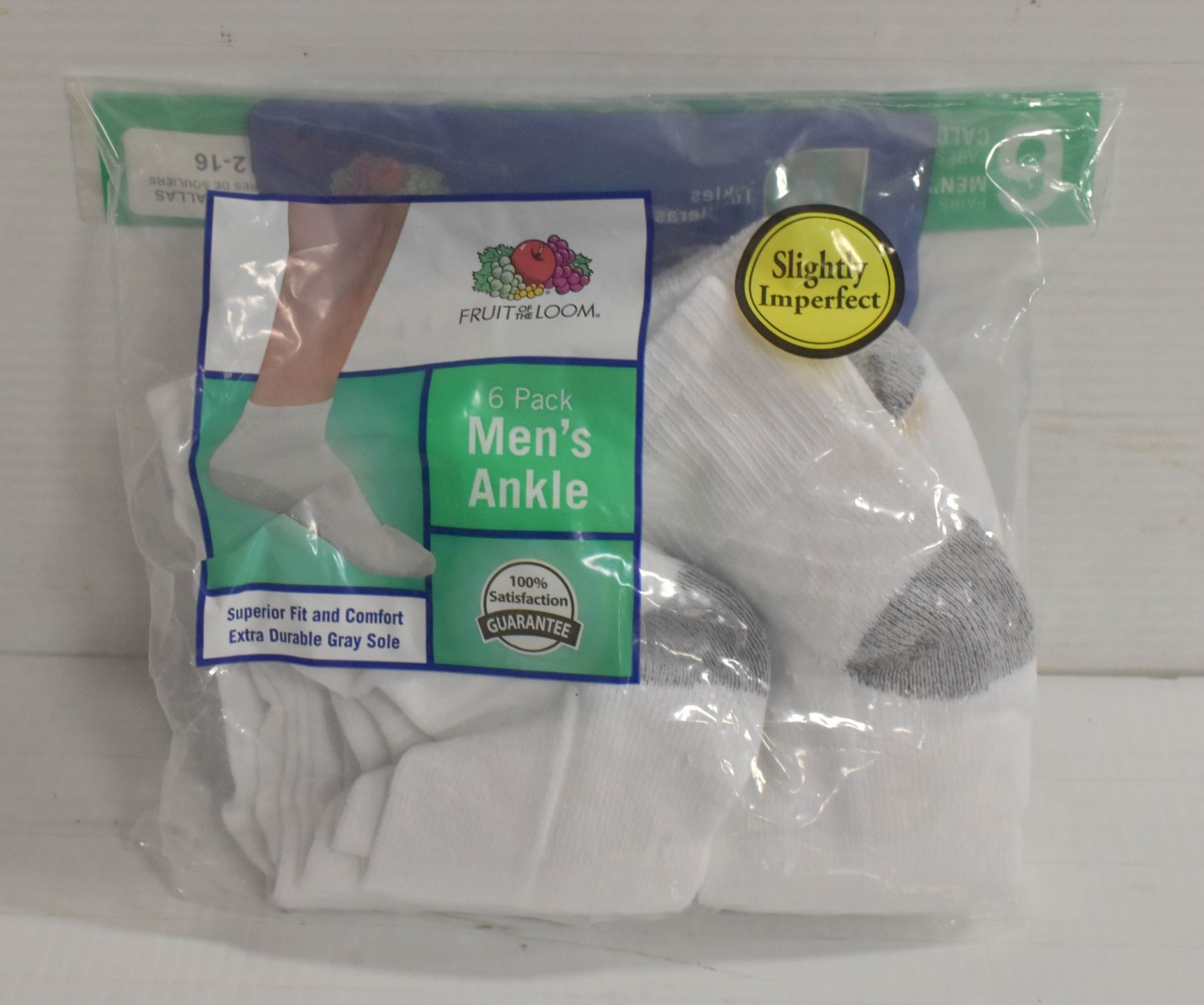 WHITE ANKLE SOCKS,SIZE 12-16,6-PACK,FRUIT OF THE