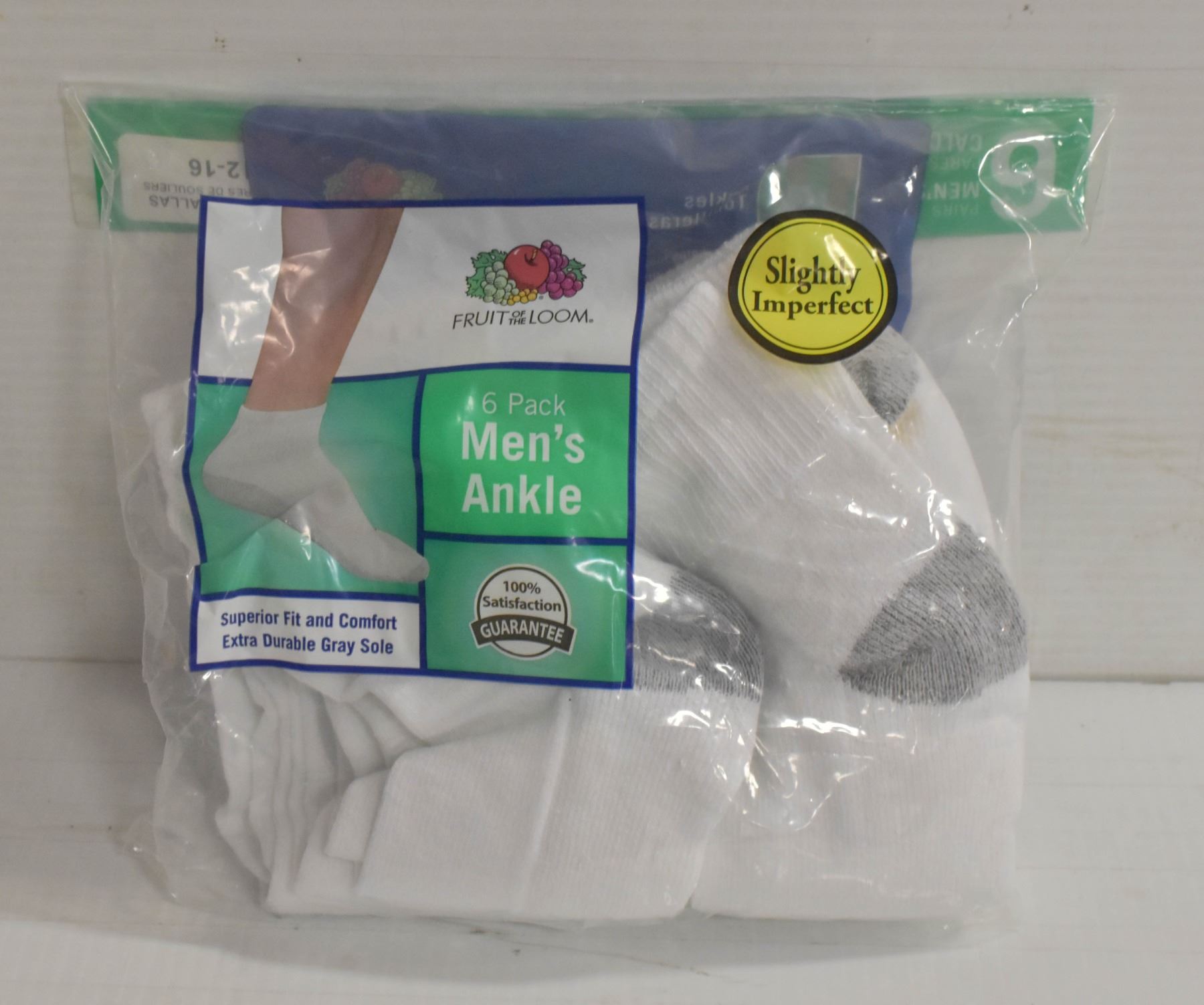 WHITE ANKLE SOCKS,SIZE 12-16,6-PACK,FRUIT OF THE