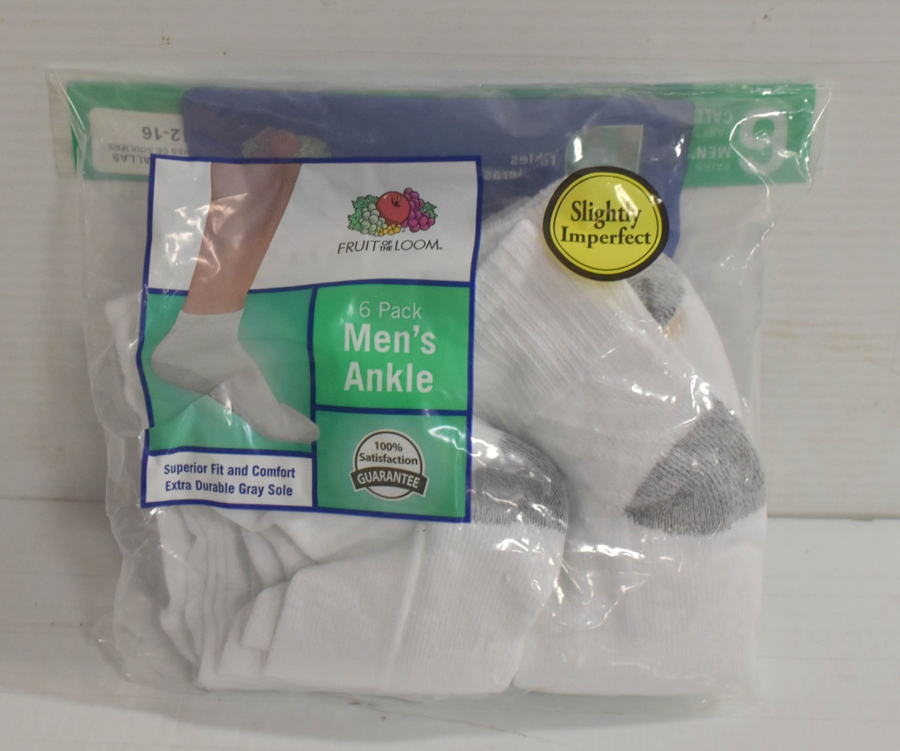 WHITE ANKLE SOCKS,SIZE 12-16,6-PACK,FRUIT OF THE