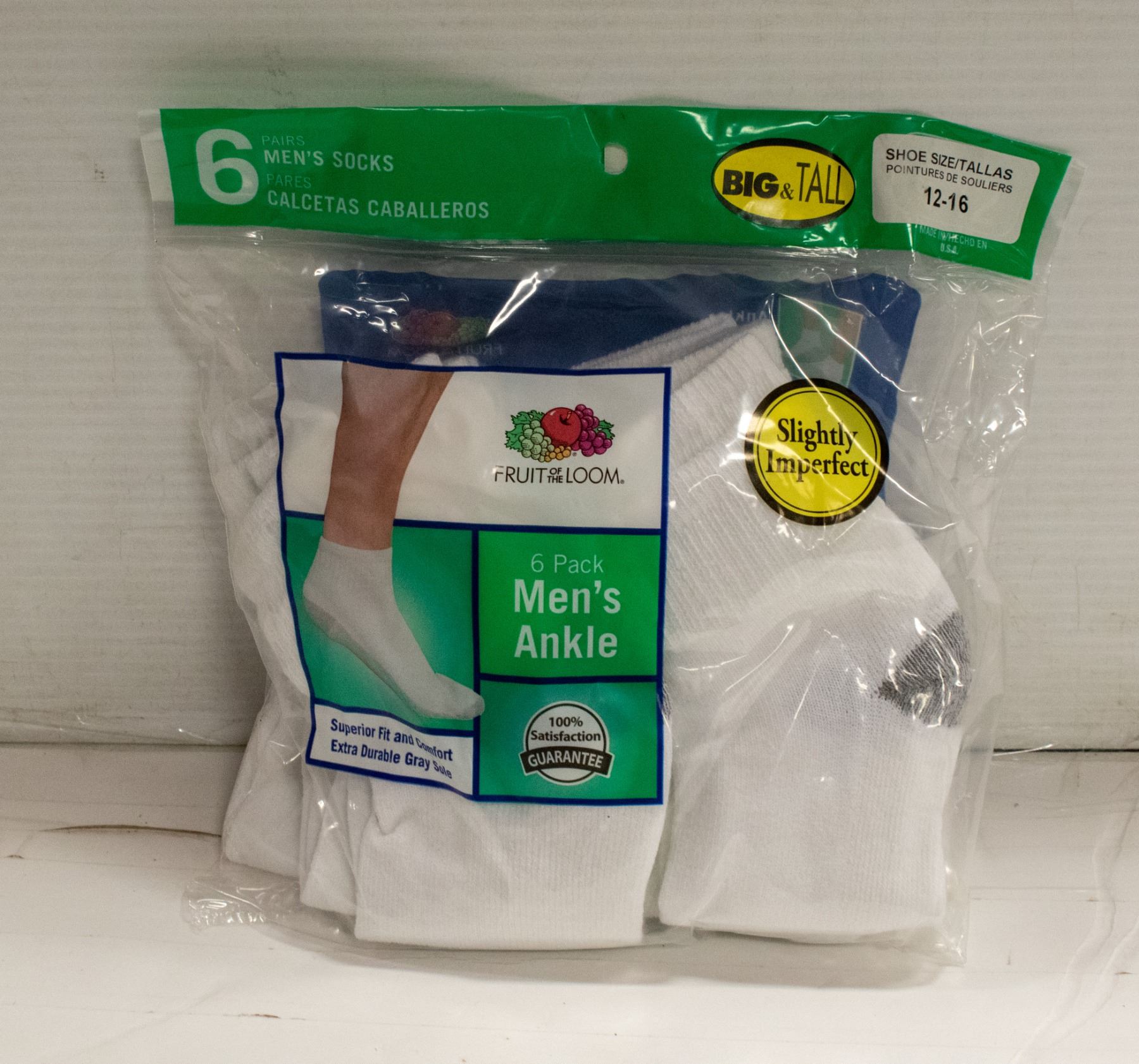 WHITE ANKLE SOCKS SIZE 12-16 PACK OF 6