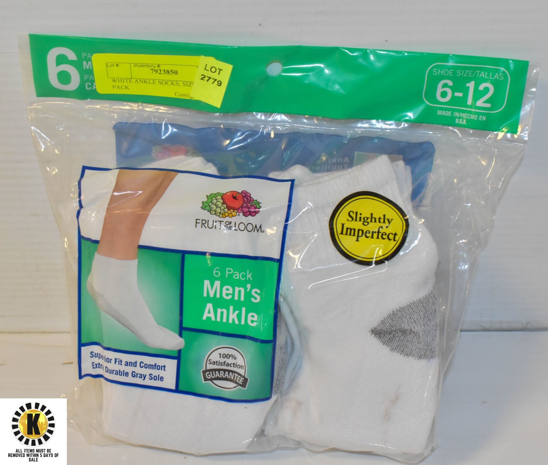 WHITE ANKLE SOCKS, SIZE 6-12, 6 PACK