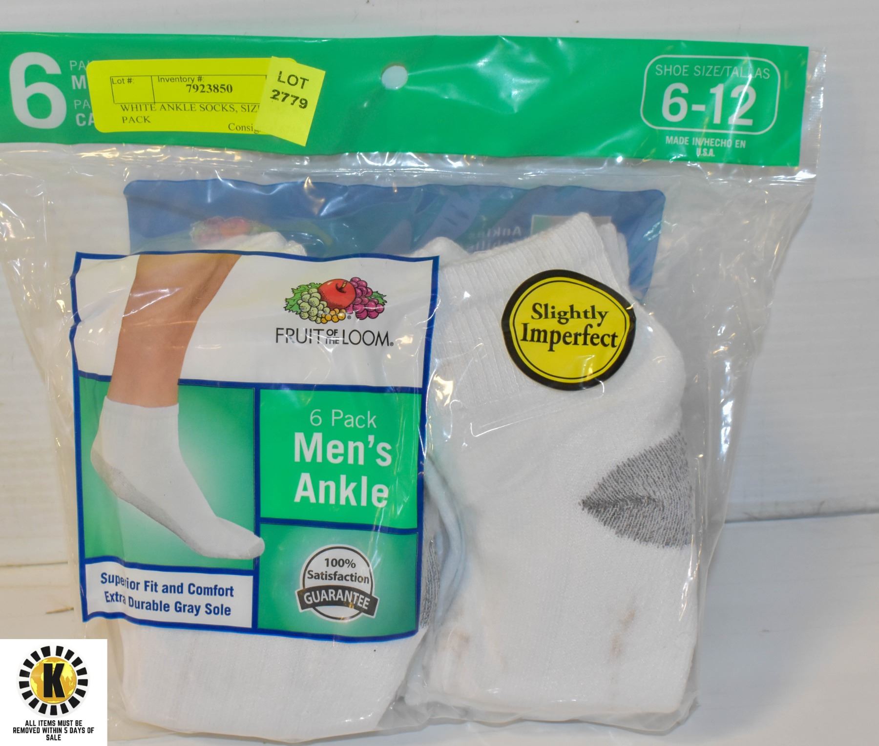 WHITE ANKLE SOCKS, SIZE 6-12, 6 PACK