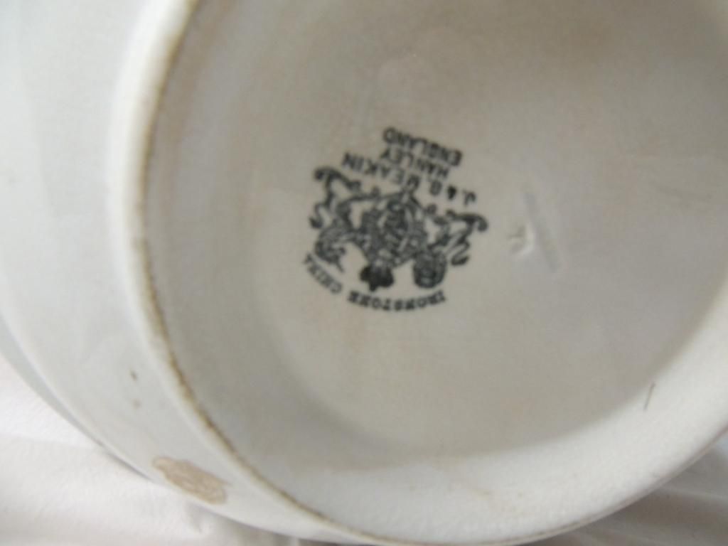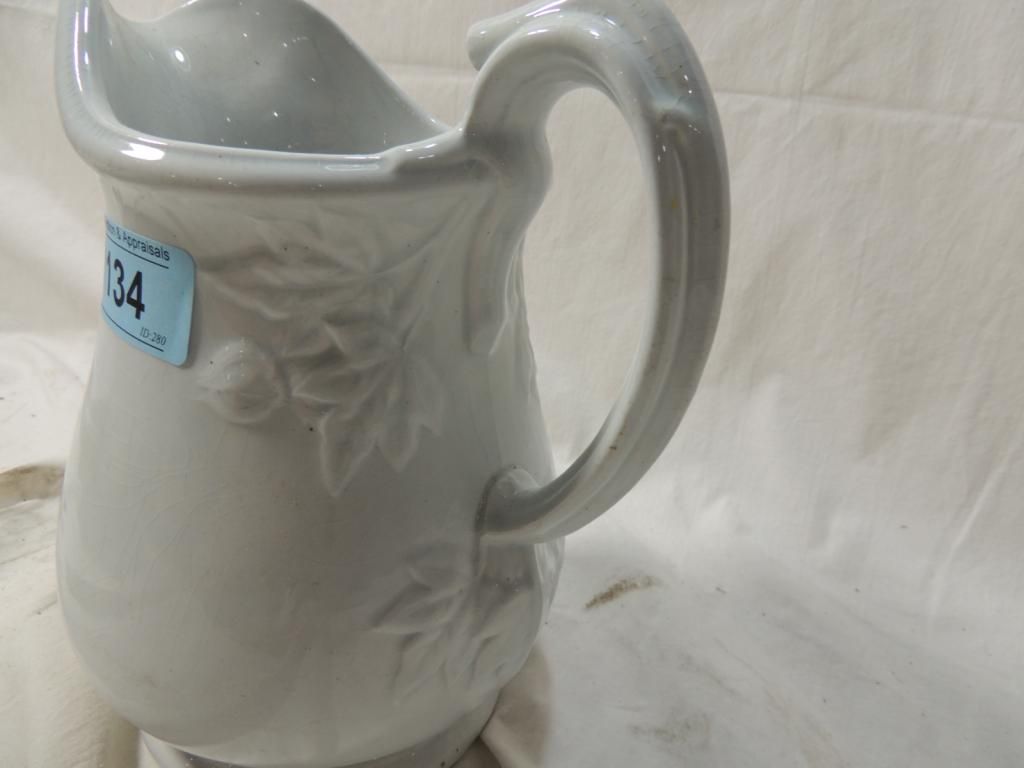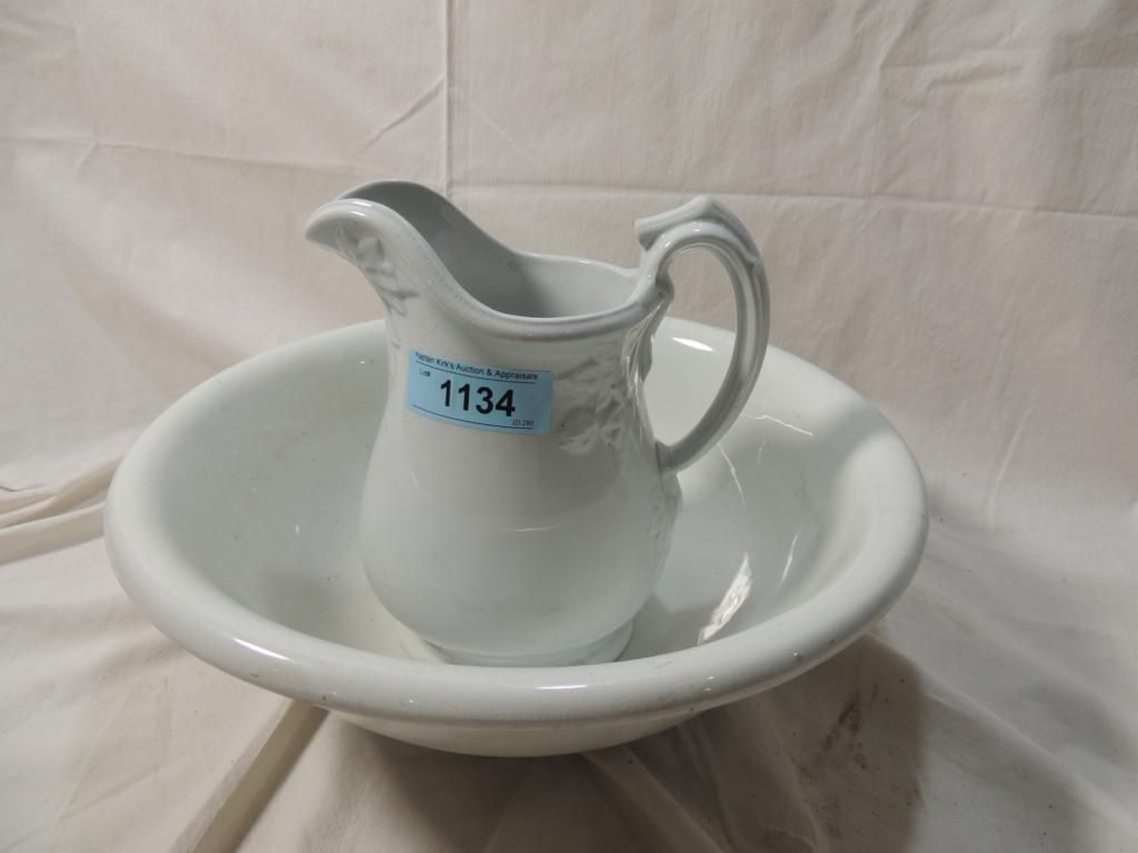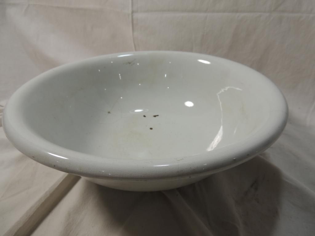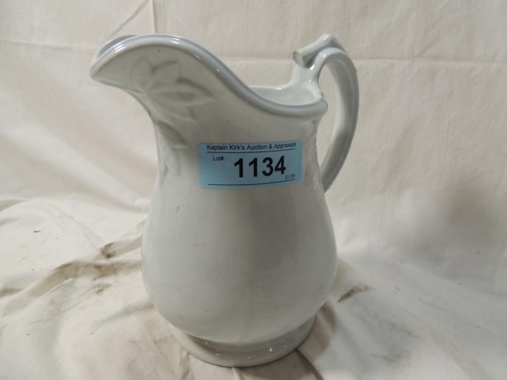 WASH BASIN ANTIQUE SET WHTIE PORCLEIN SOME SMALL CRACKS. LEAF DETAILS. AS SHOWN. SEE PHOTO FOR MORE DETAILS.