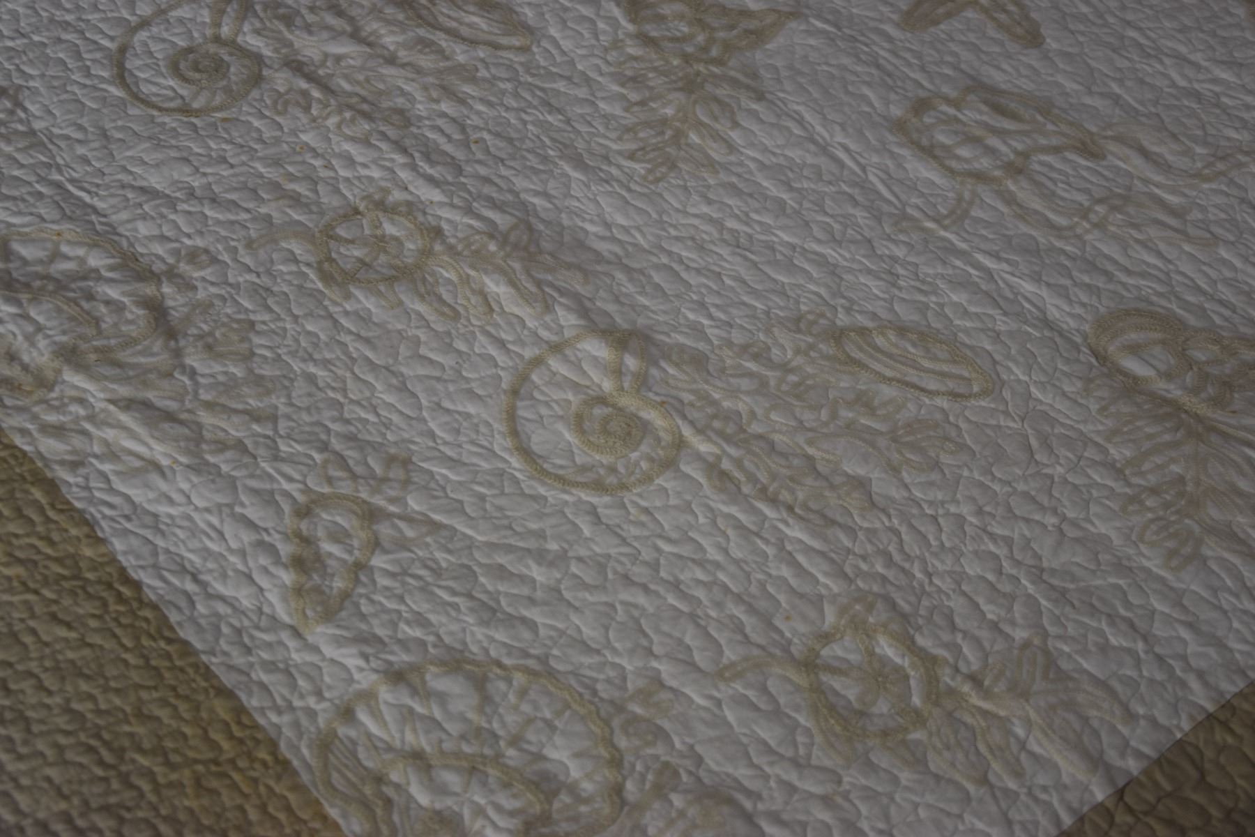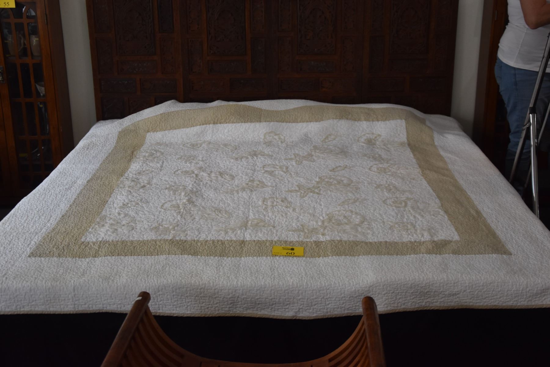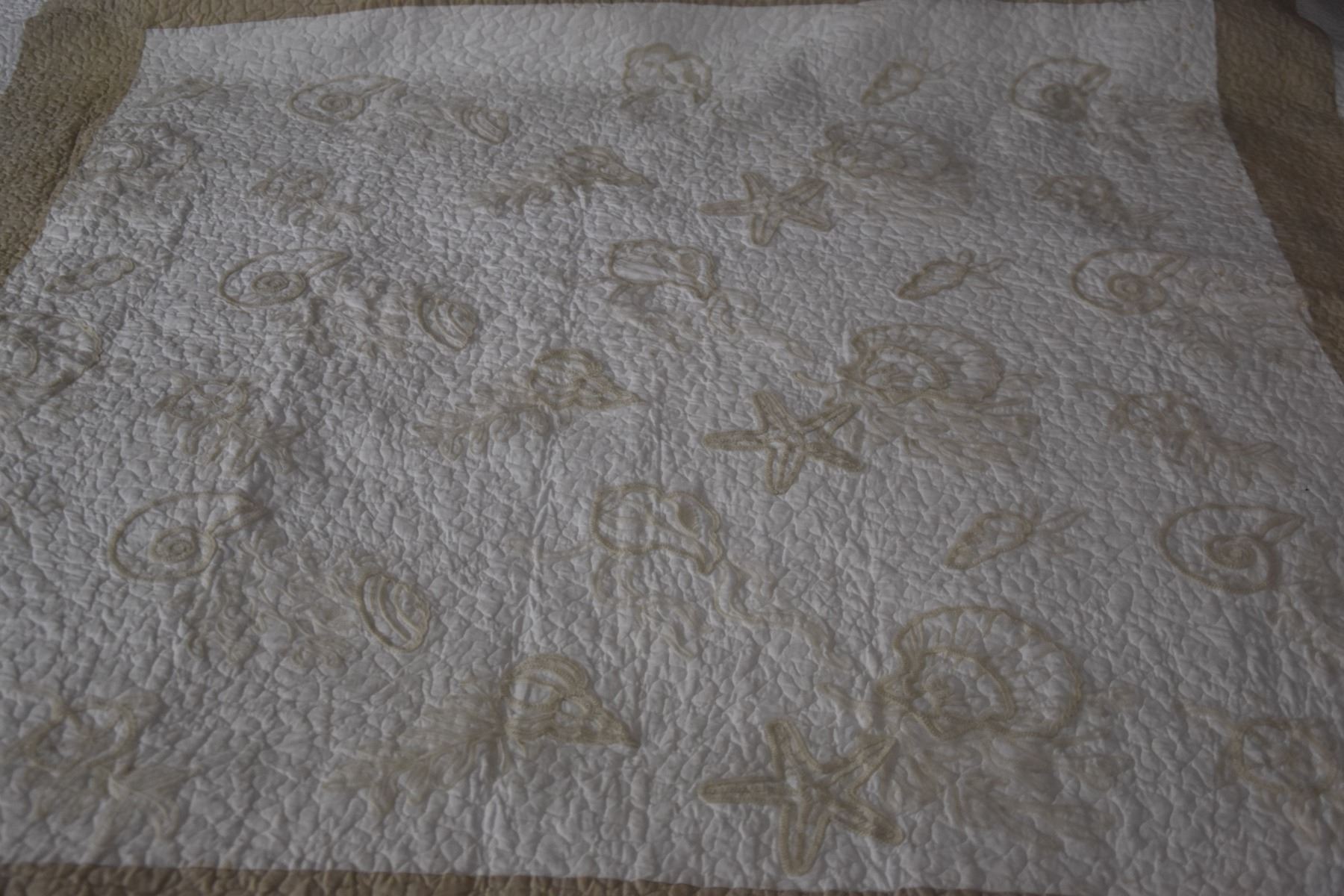 WHITE & BEIGE SHELL MOTIF QUILT (88" X 92")