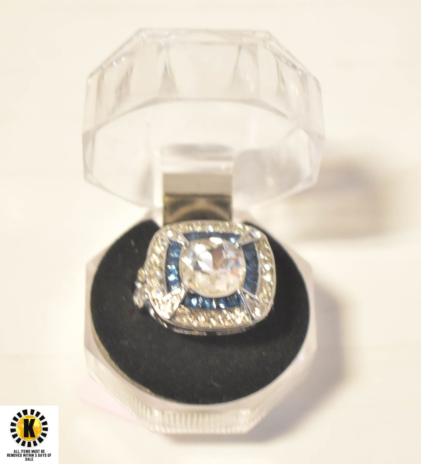 WHITE & BLUE ZIRCON CZ RING STERLING SILVER