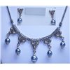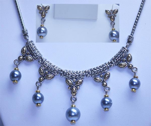 WHITE BRASS ANTIQUE STYLE SYNTETIC BLUE PEARL NECKLACE **|**|** WHITE BRASS ANTIQUE STYLE SYNTETIC BLUE PEARL NECKLACE AND EARRING SET ; MSRP: $900