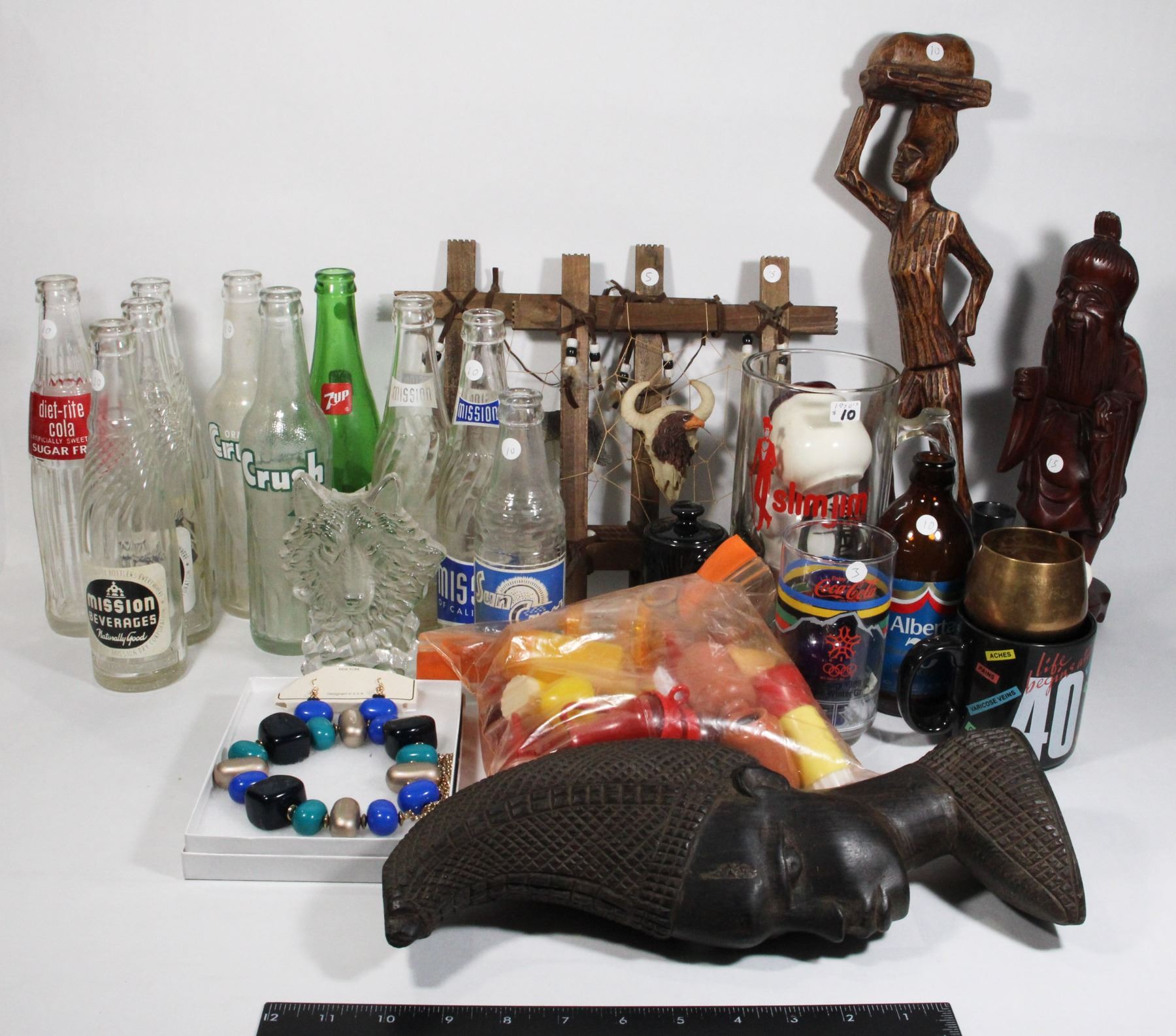 BRASS, BOTTLES, FIGURINES, SALT & PEPPER SHAKERS, ETC