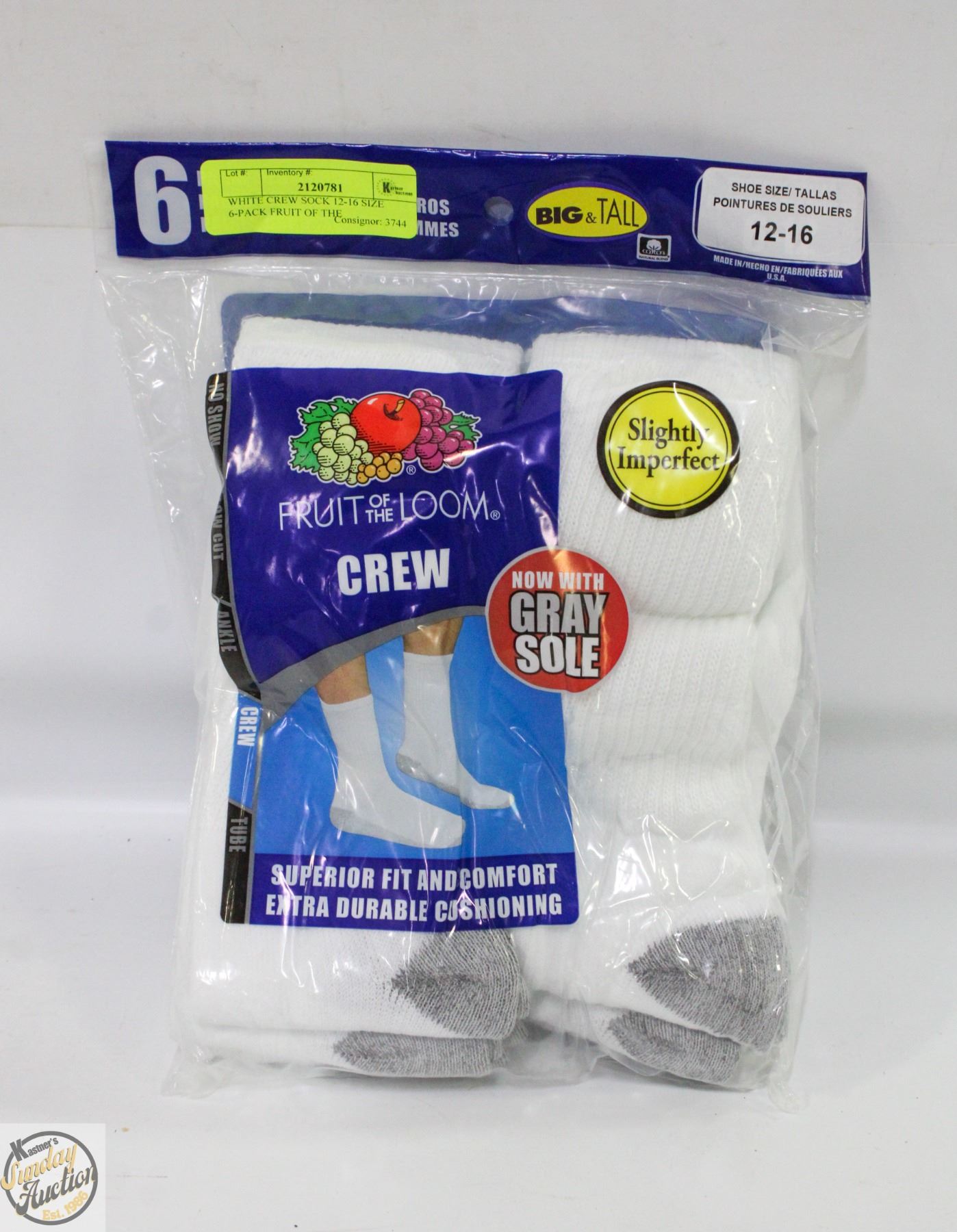 WHITE CREW SOCK 12-16 SIZE 6-PACK FRUIT OF THE