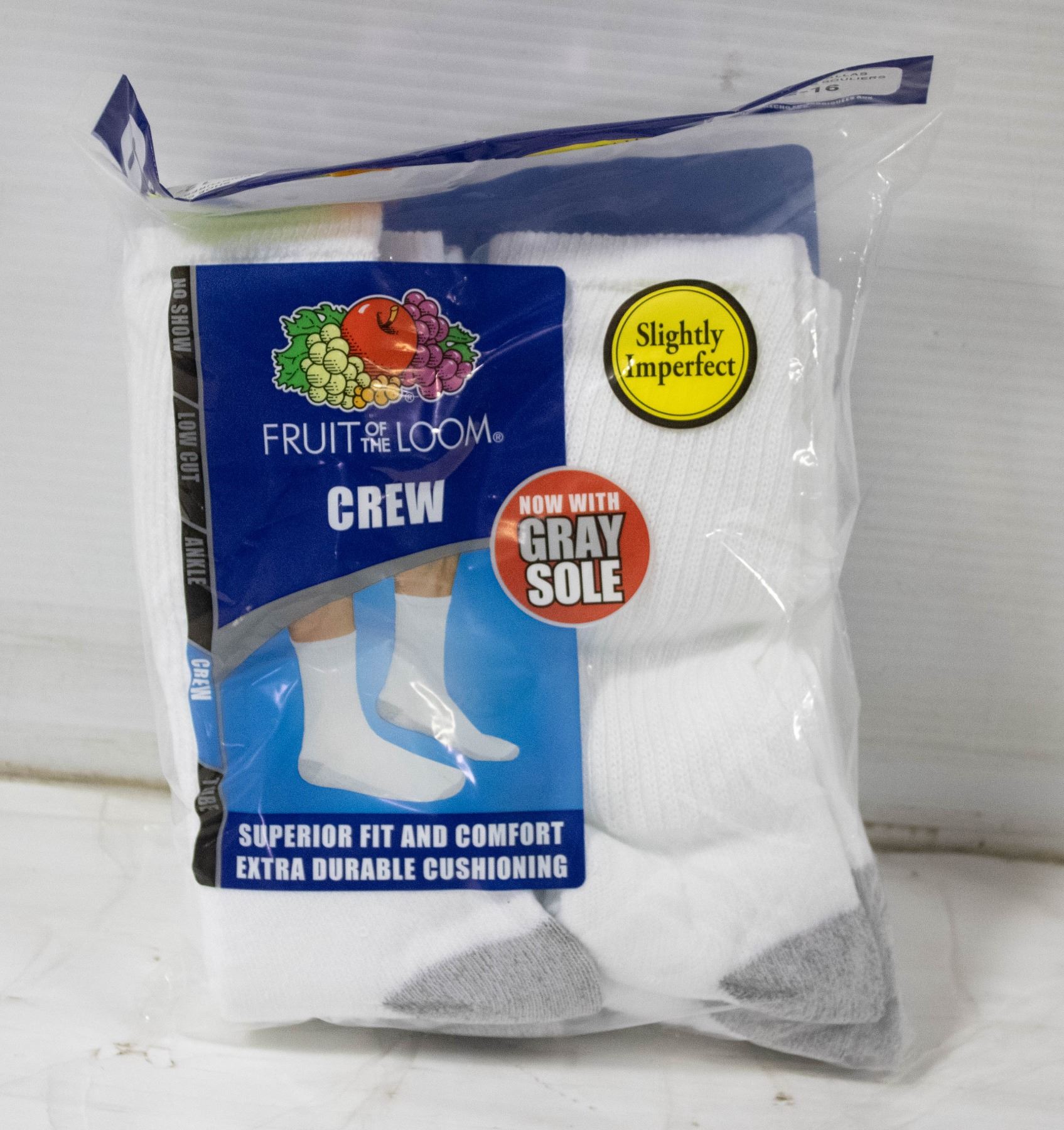 WHITE CREW SOCKS 12-16 SIZE 6-PACK FRUIT OF LOOM