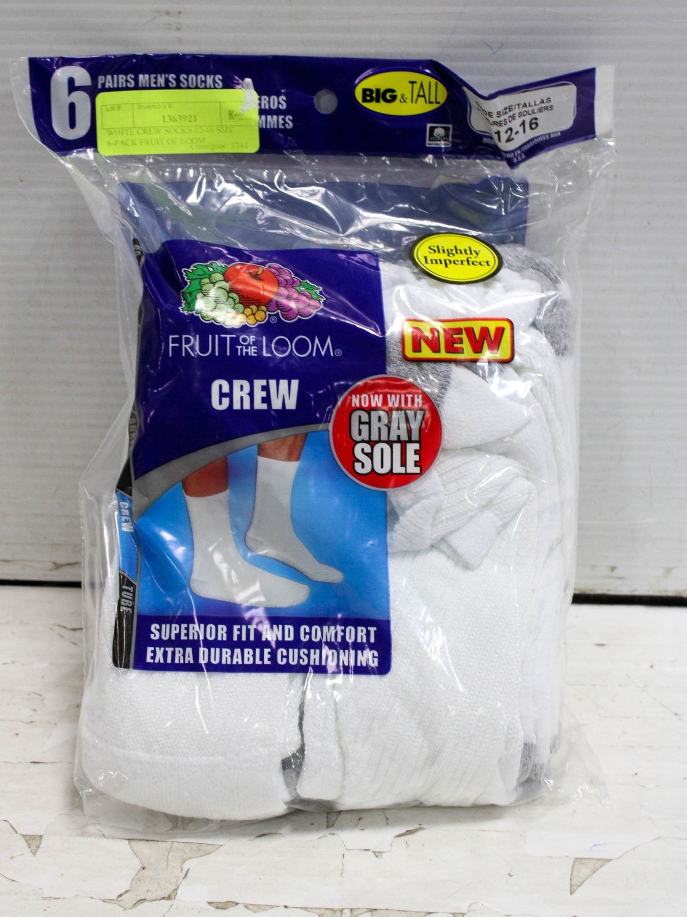 WHITE CREW SOCKS 12-16 SIZE 6-PACK FRUIT OF LOOM