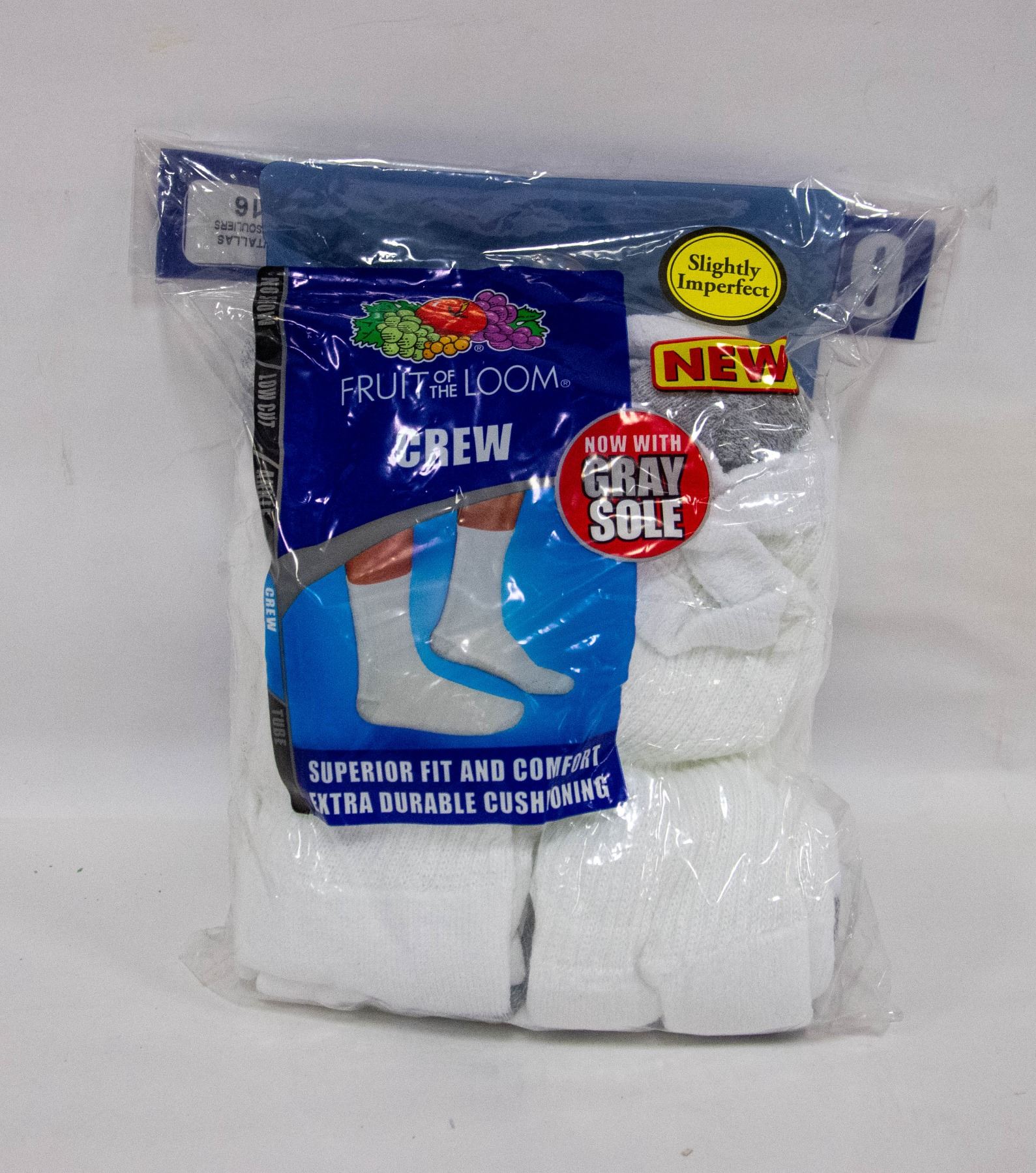 WHITE CREW SOCKS 12-16 SIZE 6-PACK FRUIT OF LOOM