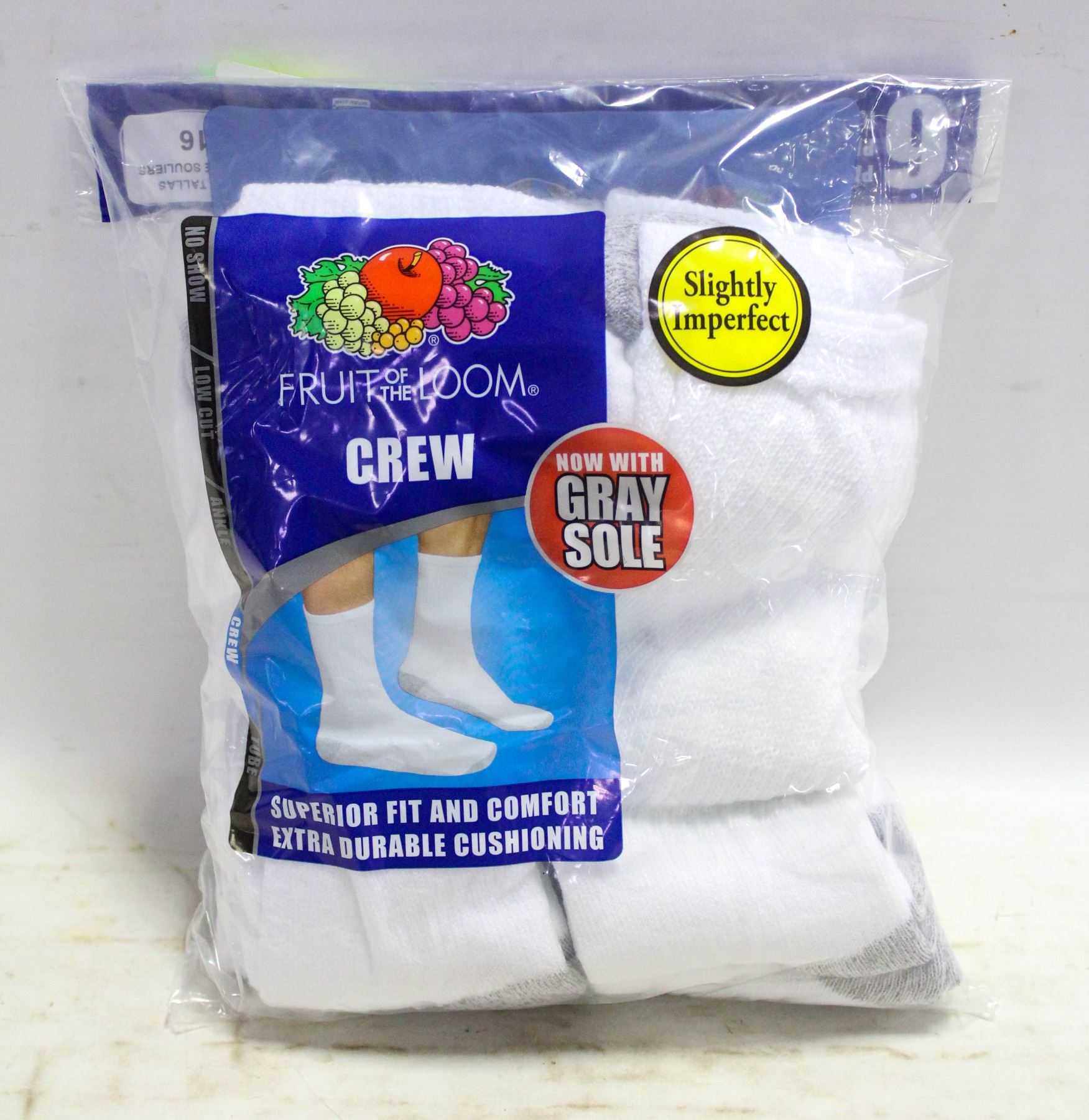 WHITE CREW SOCKS 12-16 SIZE 6-PACK FRUIT OF THE LO