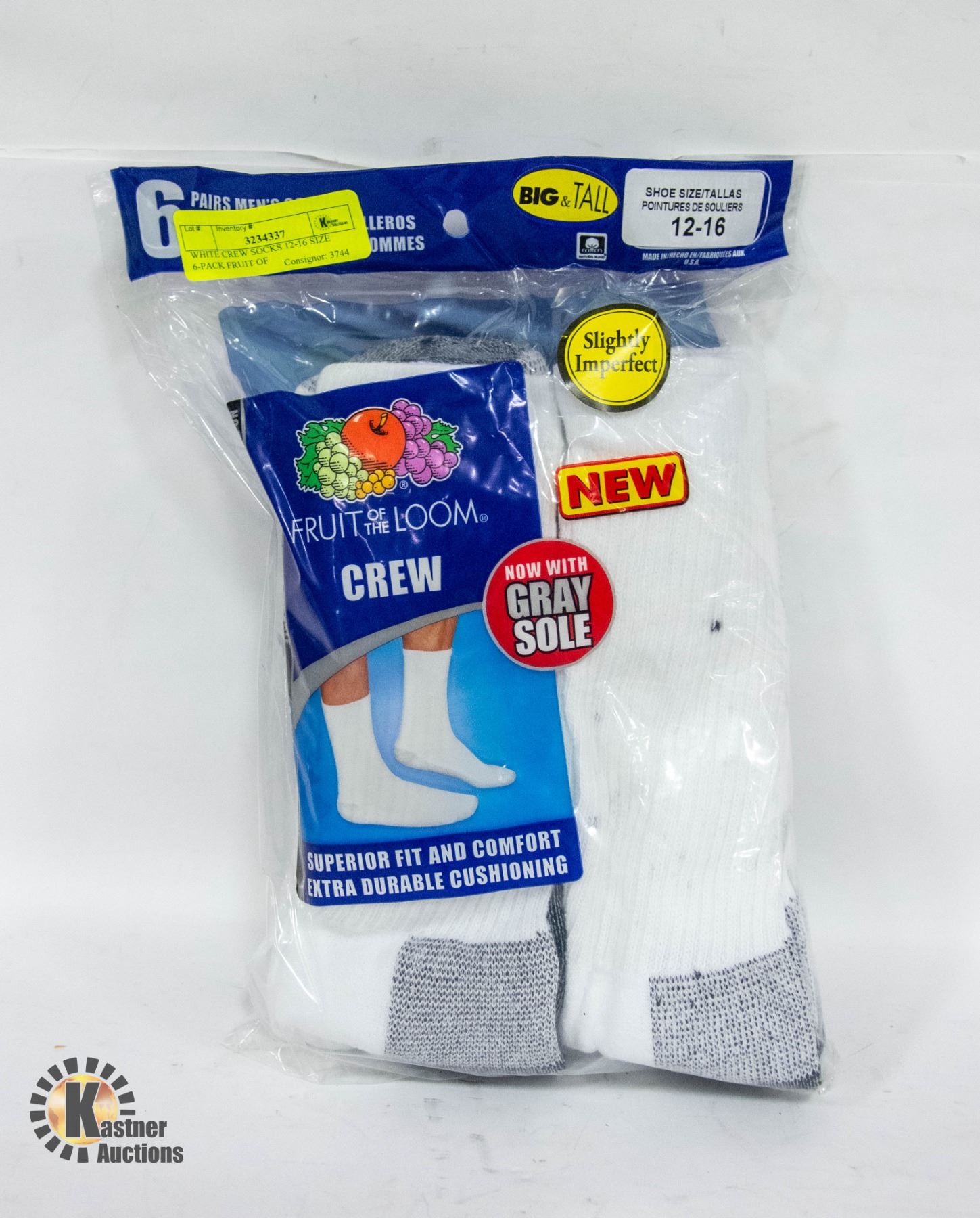 WHITE CREW SOCKS 12-16 SIZE 6-PACK FRUIT OF